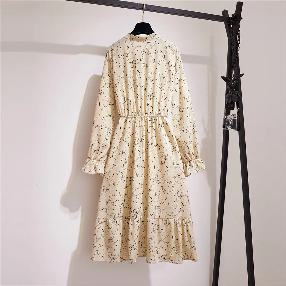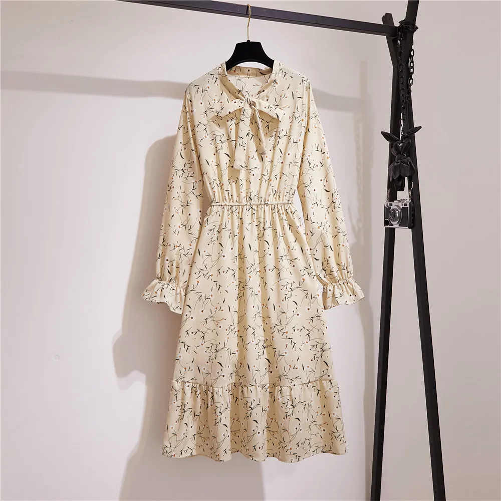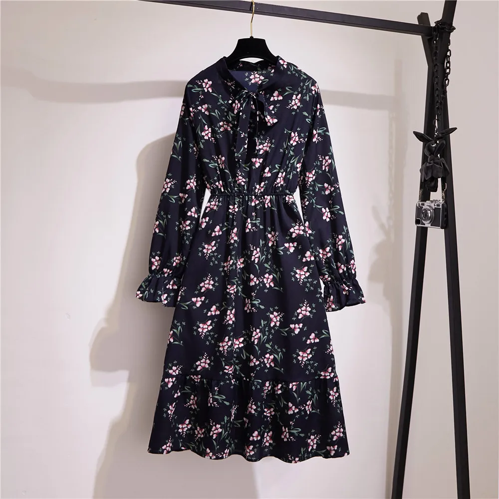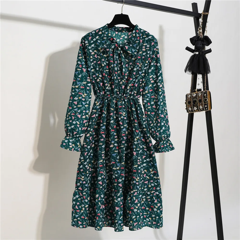 Женское офисное платье миди, Осеннее винтажное платье в горошек с цветочным принтом и длинным рукавом, Корейская рубашка для вечеринок, 2020