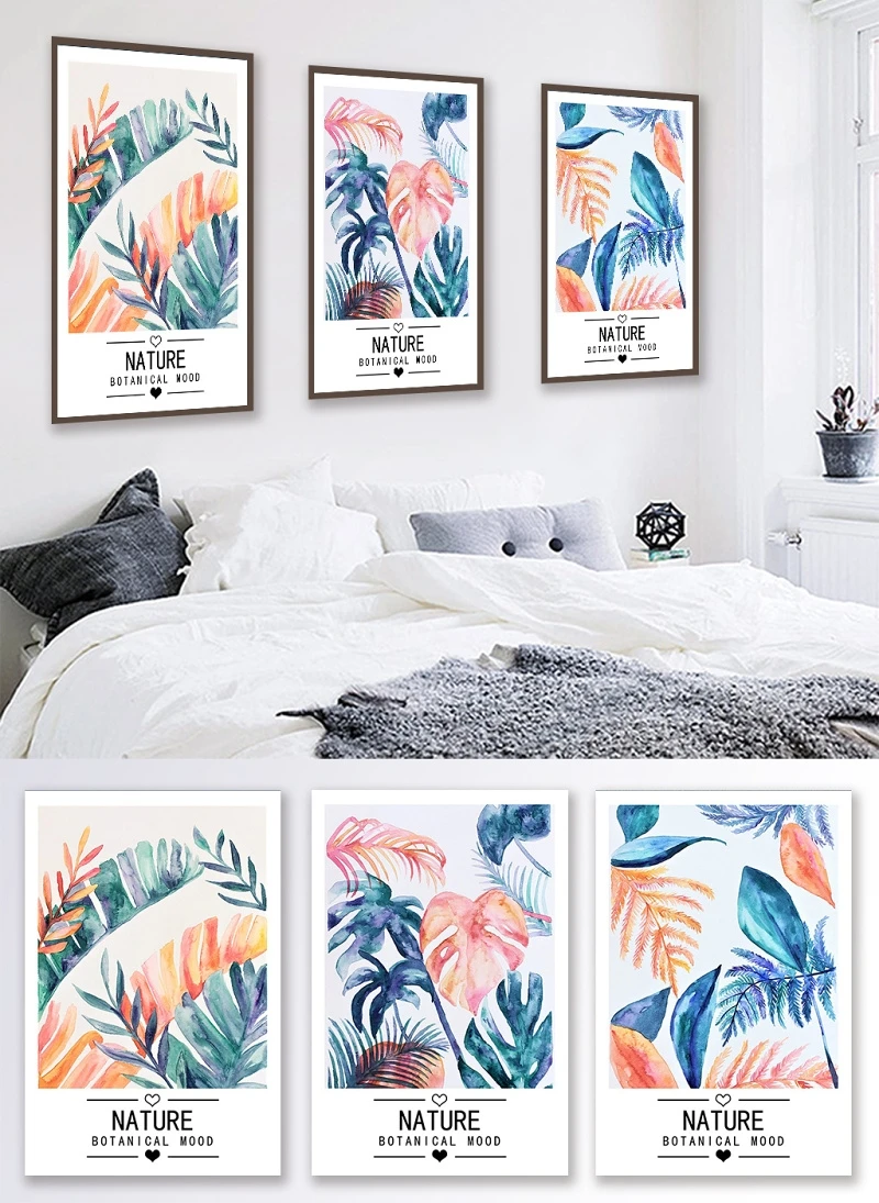 Холст печать постер Вода цвет листья стены Искусство Холст Картина растение Современные настенные художественные картины для гостиной домашний декор 2-96