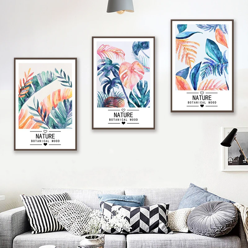 Постер на холсте с изображением акварельных листьев, настенная Картина на холсте с изображением растений, современные настенные картины для гостиной, домашний декор 2-96