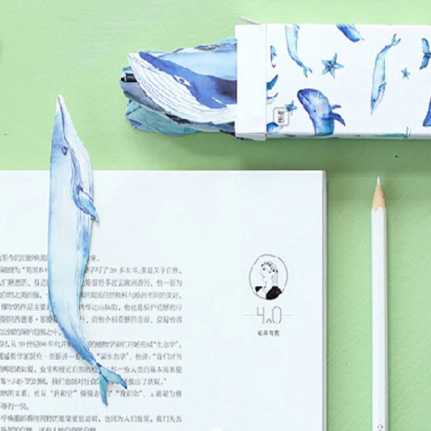 10 упаковокпартия, мультяшная коробка, набор, бумажная Закладка, синяя форма Кита, держатель для страницы, канцелярская этикетка, напоминание о сообщениях для notbook, оптовая продажа