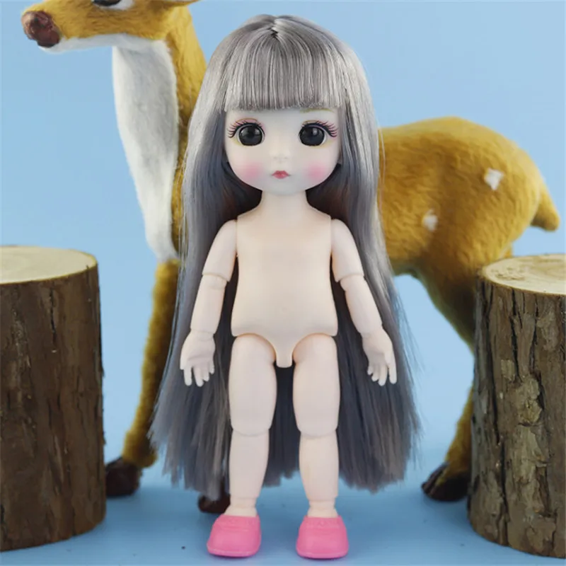 16 см BJD кукла аксессуары 3D глаза с 13 суставов тело длинный парик волосы женские голые обнаженные Куклы Игрушки для девочек голова куклы