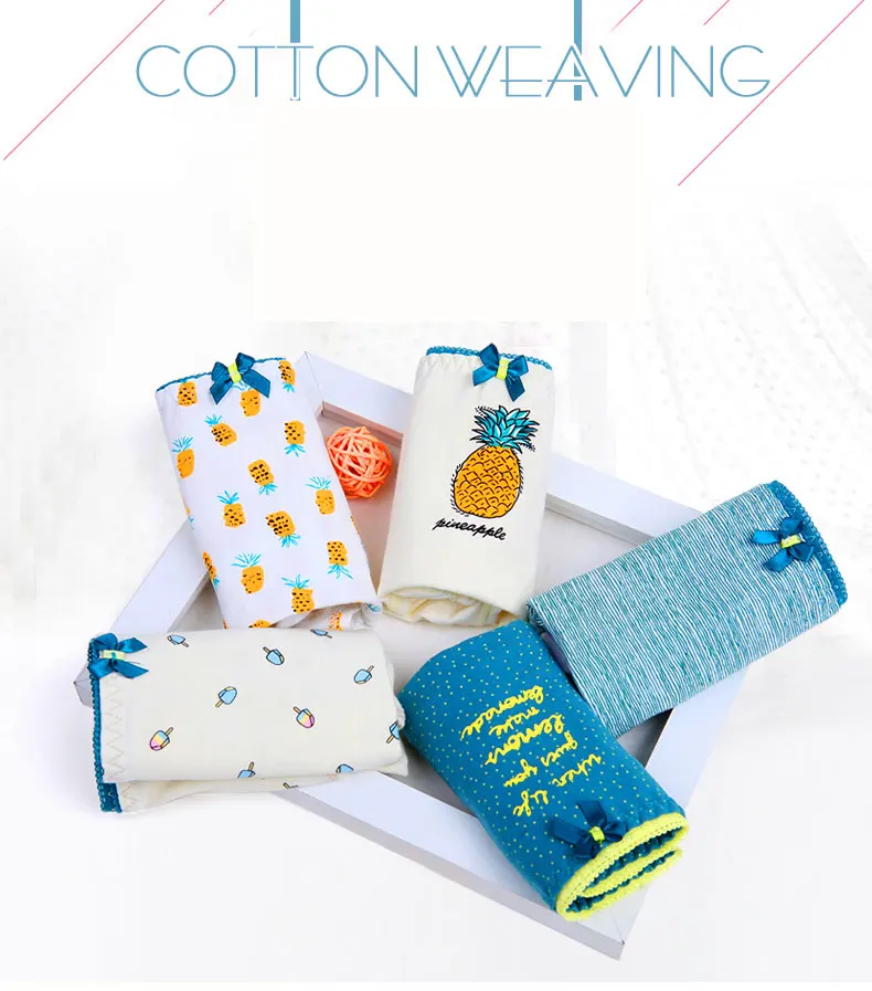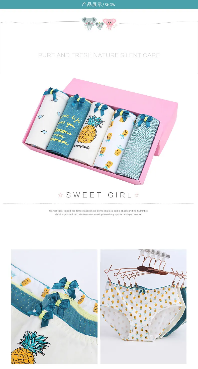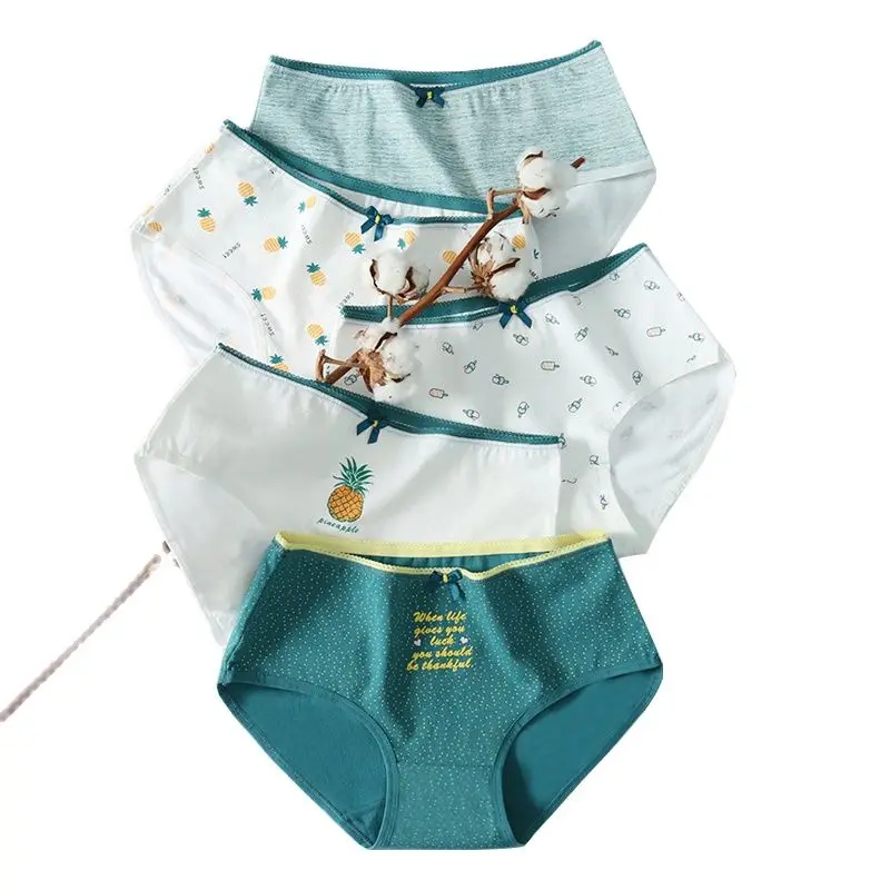 Трусы женские LANGSHA, хлопковые, бесшовные, дышащие, с милым принтом, 5 шт.