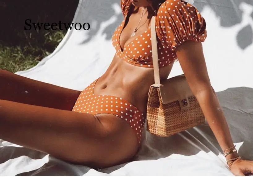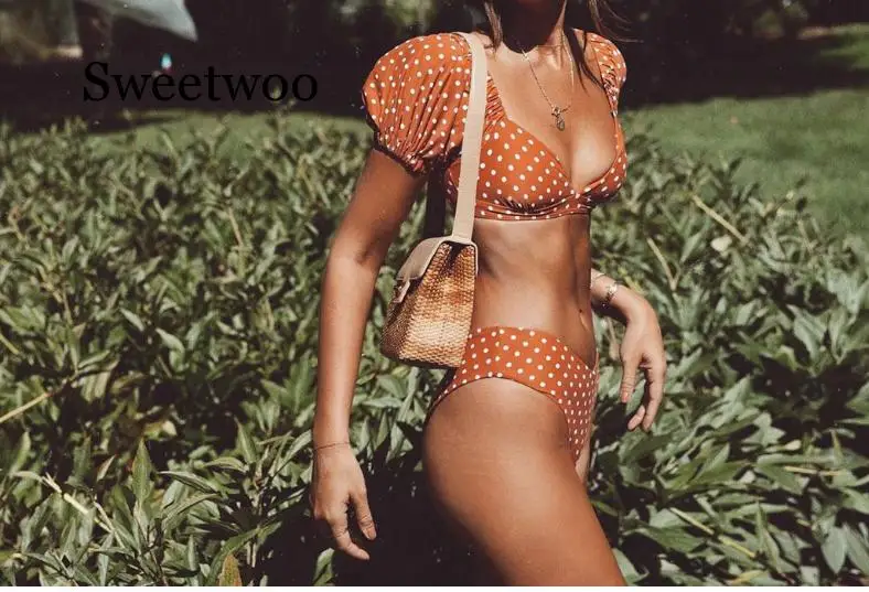 Сексуальное бикини SWEETWOO с коротким рукавом 2020, купальник для женщин с V-образным вырезом, летняя пляжная одежда, купальник, женские купальники, купальный костюм