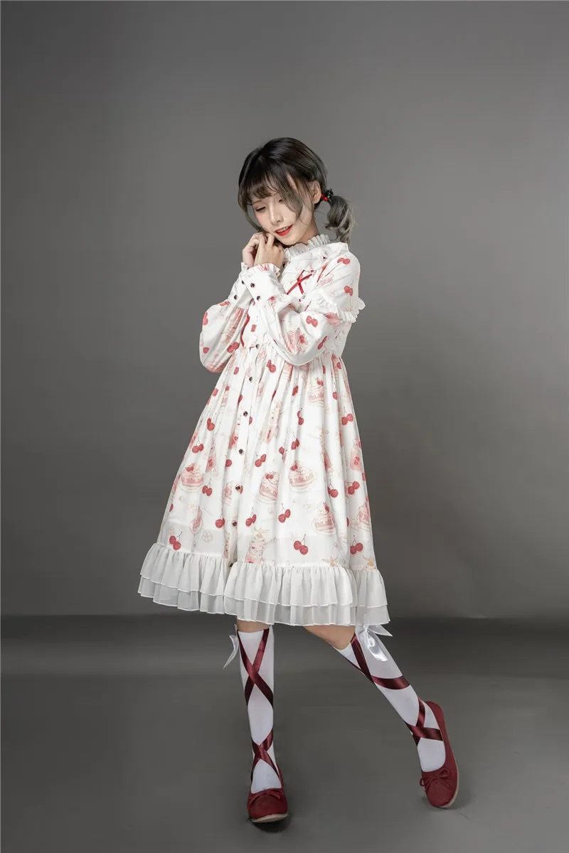 Платье с завышенной талией в стиле Лолиты вишни, платье в стиле японской милой Лолиты, винтажное платье в викторианском стиле для девочек, платье в готическом стиле Лолиты