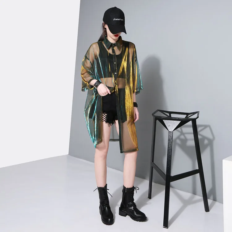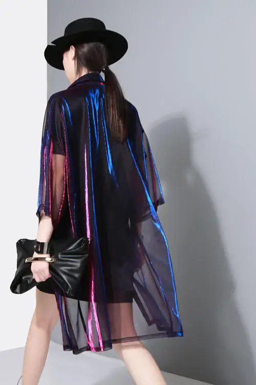 Женская голографическая одежда, летняя одежда с голограммой, Радужное металлическое Сетчатое платье