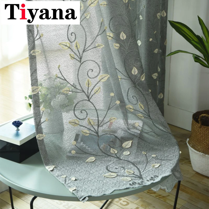 Сетчатые вышитые тюлевые прозрачные Занавески на окна для гостиной, с рисунком листьев, птичьего гнезда, M229X