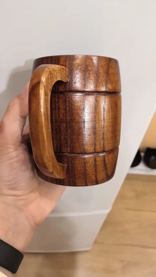 Время доставки очень быстрое. Красивая и легкая кружка, хотя и не уверен, сколько времени это продержится, потому что я чувствую себя после одного использования «дерево» (или, вернее, лак) уже были некоторые изменения в нашей Звезды снижены из-за неправильного описания. Это не 400, а 300 мл (что делает разницу, и была основной причиной для покупки)