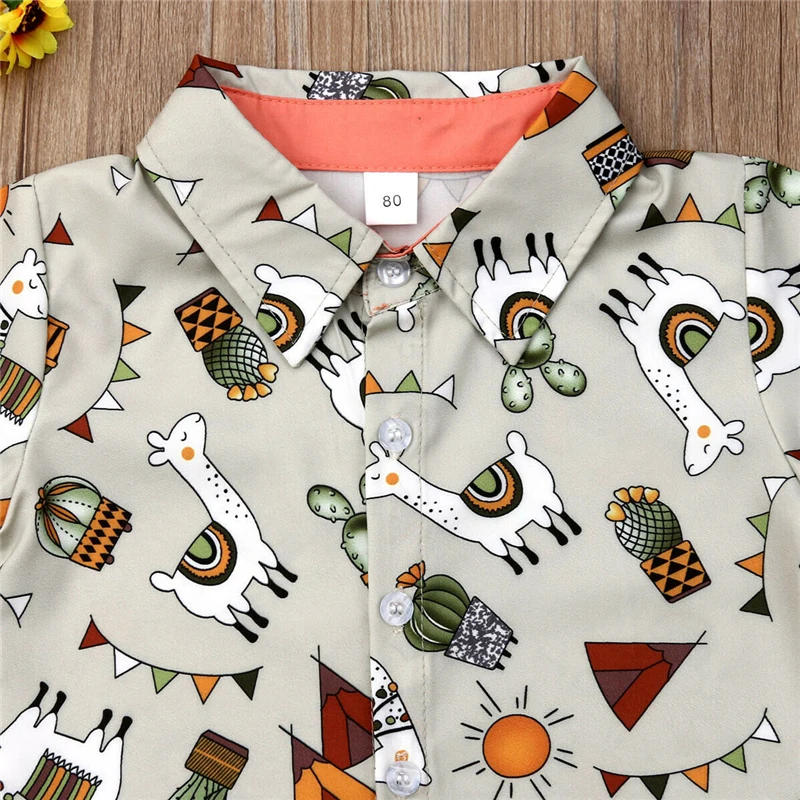 Детская одежда комплект летней одежды из 2 предметов для маленьких мальчиков Праздничная пляжная рубашка с короткими рукавами и принтом животных комплект из топа и шорт