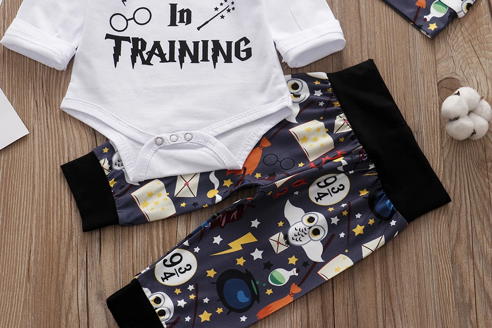 Комплект одежды из 3 предметов для новорожденных; комплект одежды для малышей с изображением маленького волшебника; комбинезон + штаны + шапочка; одежда для малышей