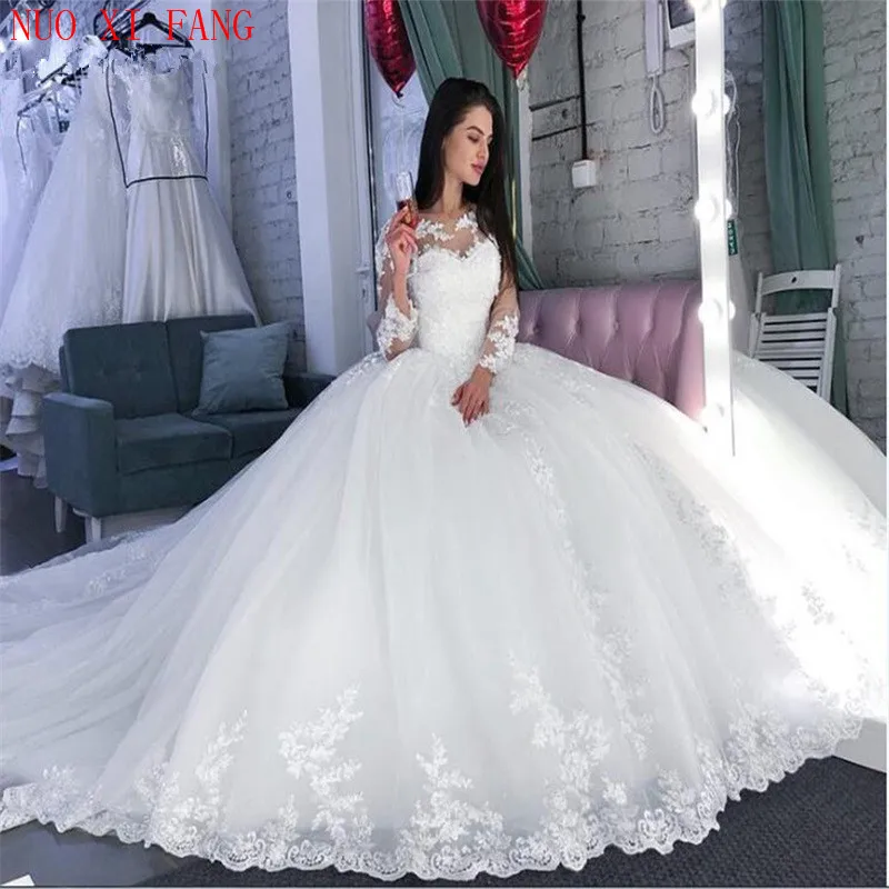 Бальное платье с длинным рукавом, свадебное платье, роскошное женское кружевное платье 2022