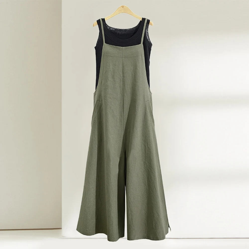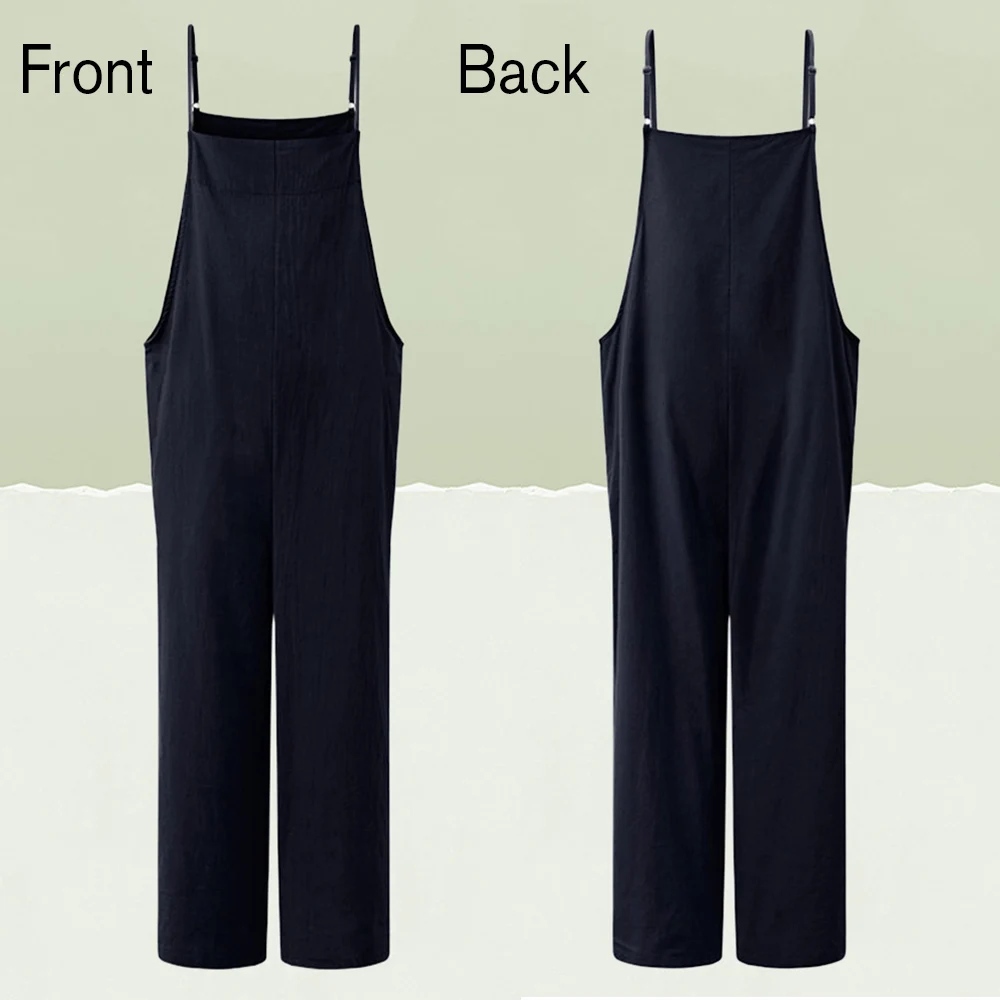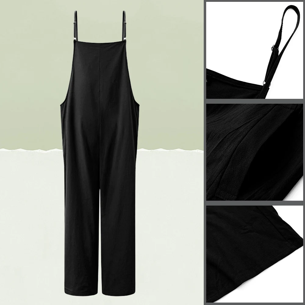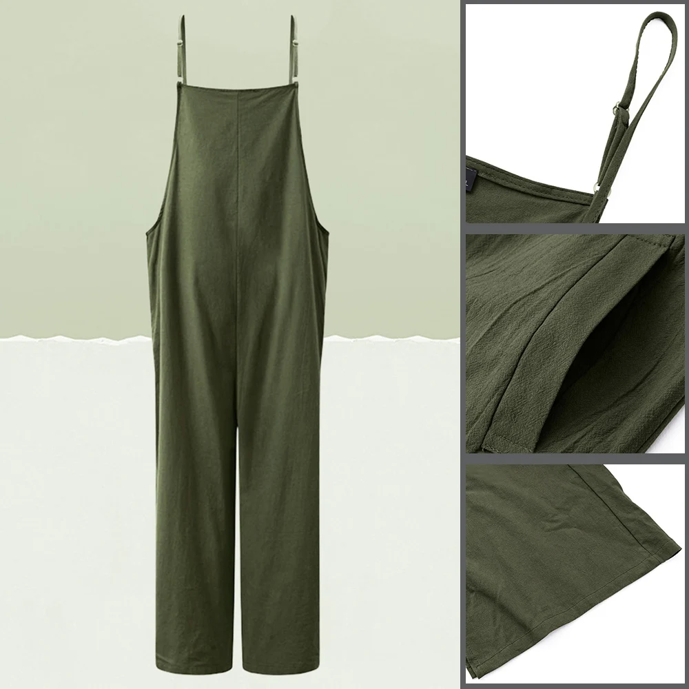 Женский хлопковый комбинезон, повседневный однотонный льняной комбинезон большого размера без рукавов, на бретелях, с широкими штанинами, лето, комбинезон широкие брюки на подтяжках