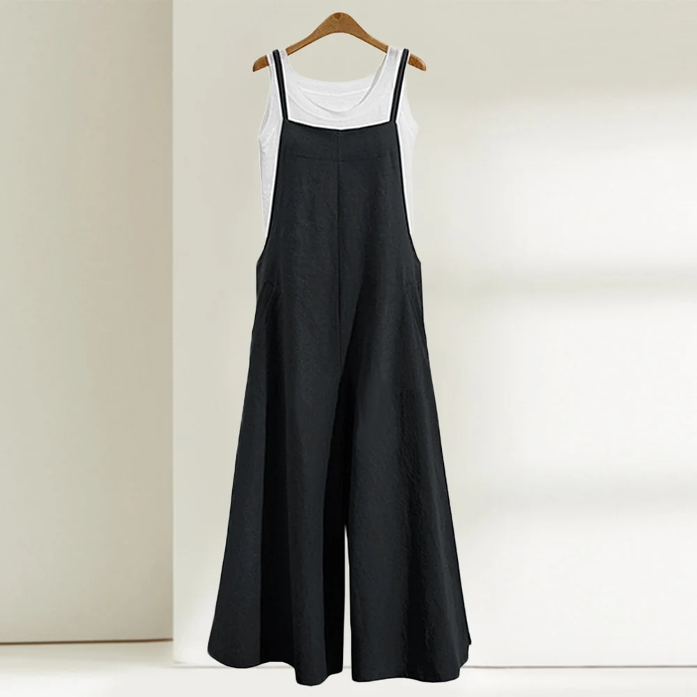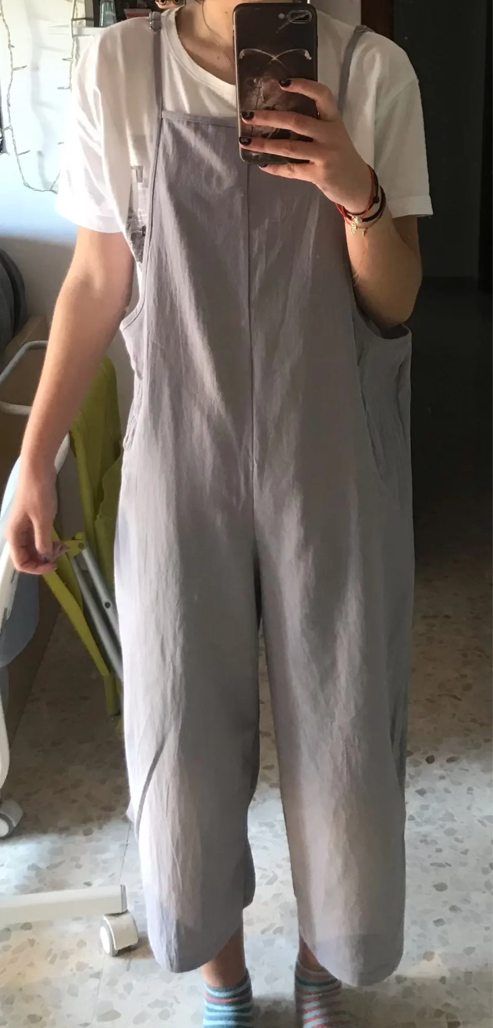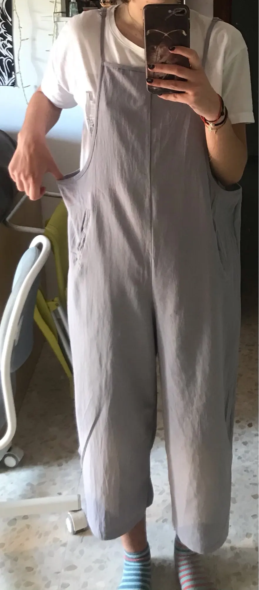 Женский хлопковый комбинезон, повседневный однотонный льняной комбинезон большого размера без рукавов, на бретелях, с широкими штанинами, лето, комбинезон широкие брюки на подтяжках