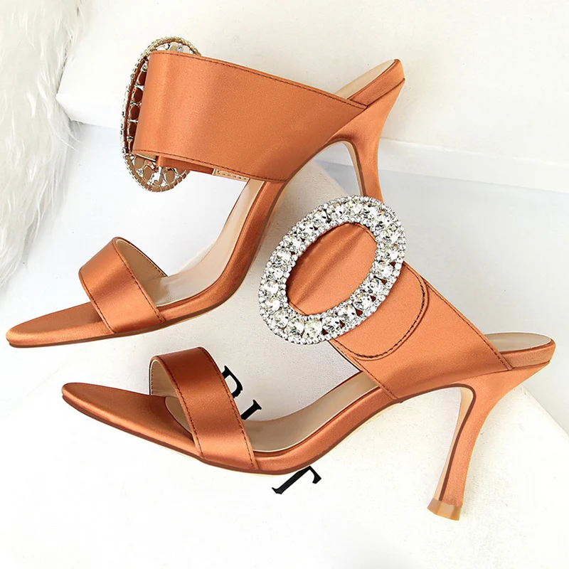 Сланцы стразы женские атласные, босоножки на высоком каблуке 2022 см, фетиш, туфли-лодочки с кристаллами, пикантные шелковые туфли-лодочки, лето 8,5