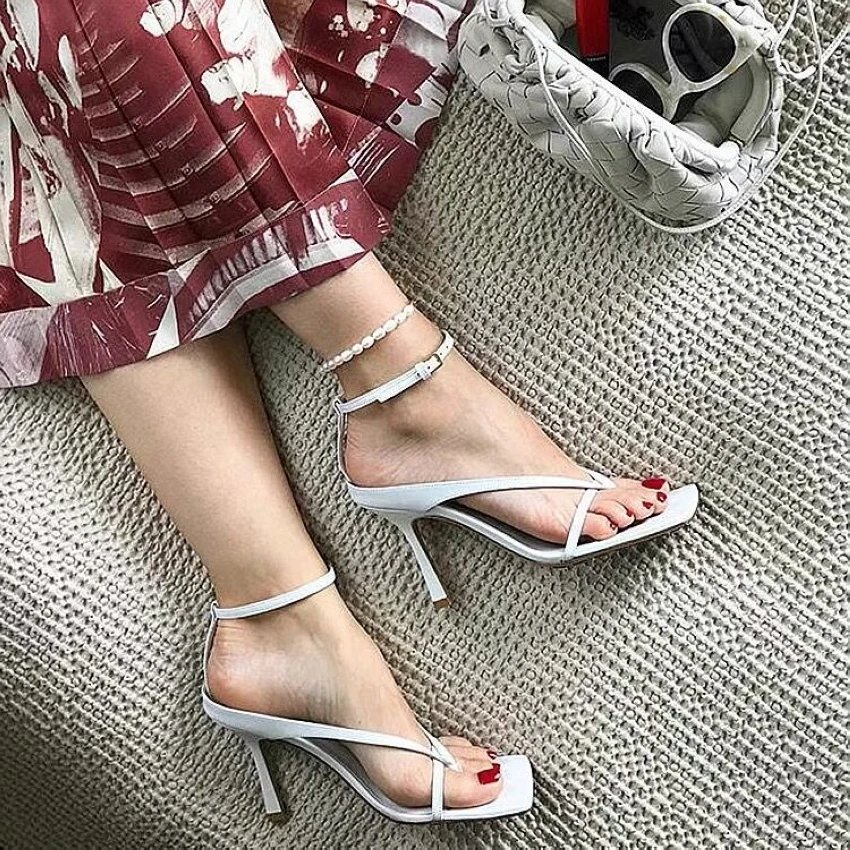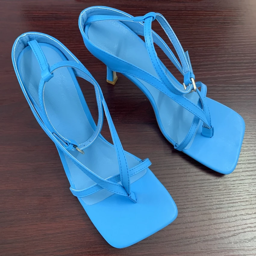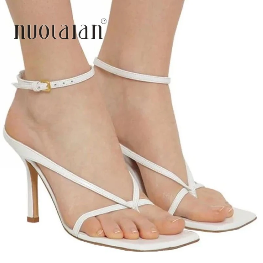 Женские босоножки с квадратным носком, летние модельные туфли на высоком каблуке 9 см, босоножки с узким ремешком, 2020, туфли на высоком каблуке с ремешком на щиколотке