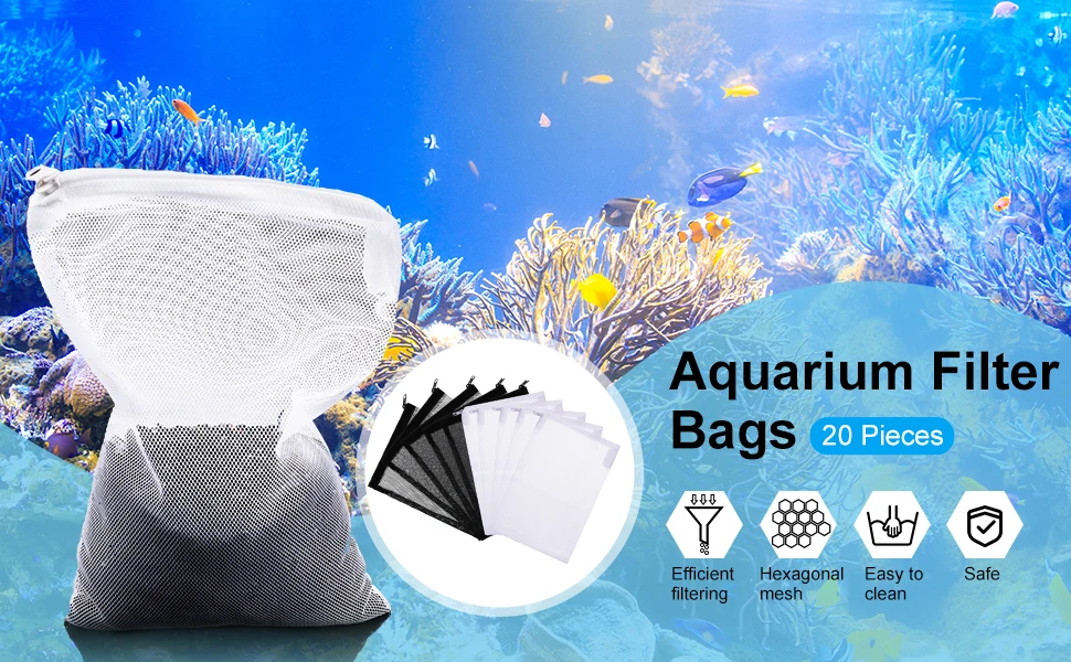 20 шт. нейлоновый фильтр для аквариума, сетчатый мешок с молнией для керамических колец, активированный карбоновый био-шар, аксессуар для аквариума