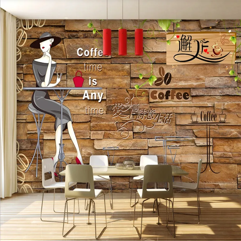 Пользовательские повседневные послеобеденное время кофе магазин фон настенная бумага 3D кафе промышленный Декор настенная бумага 3D Papel де Parede