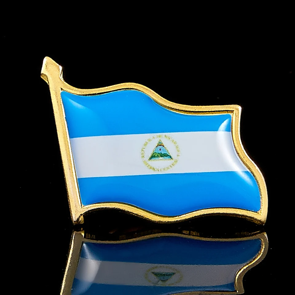 Позолоченный Флаг Республики Никарагуа, булавка для лацканов, металлические значки для рюкзаков, брошь, коллекционные ювелирные изделия