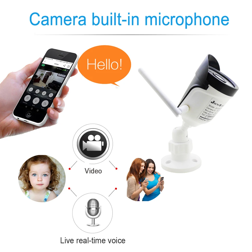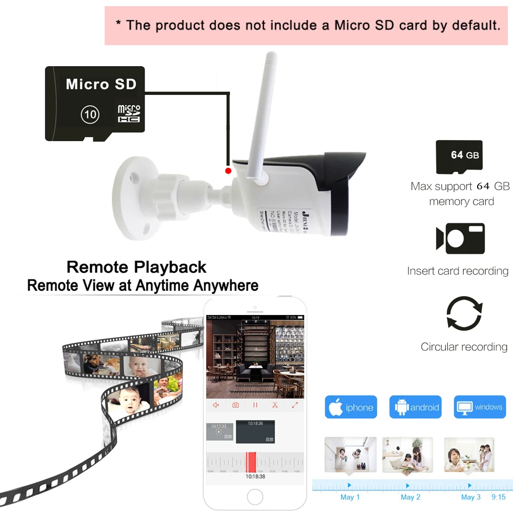 Беспроводная камера видеонаблюдения отправляет мгновенное оповещение о движении в приложение для телефона jieos. И записывает на sd-карту (звук и видео). Автоматическая съемка фотографий и отправка электронных писем с полным оповещением, мы вряд ли пропустим любые непредвиденные события, происходящие или произошедшие.
