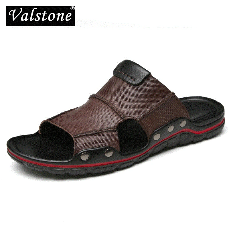 Valstone/тапочки из воловьей кожи; Мужская Летняя обувь; Классическая крутая обувь; Простая дизайнерская пляжная обувь; Высокое качество; Мягкая обувь; Большие размеры