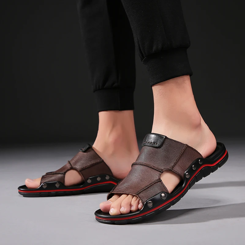 Мужские дышащие кожаные слиперы CLAX, уличные сандалии из натуральн...