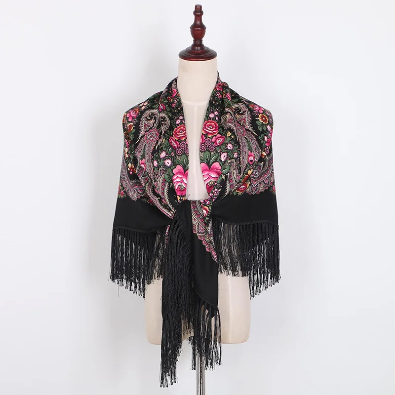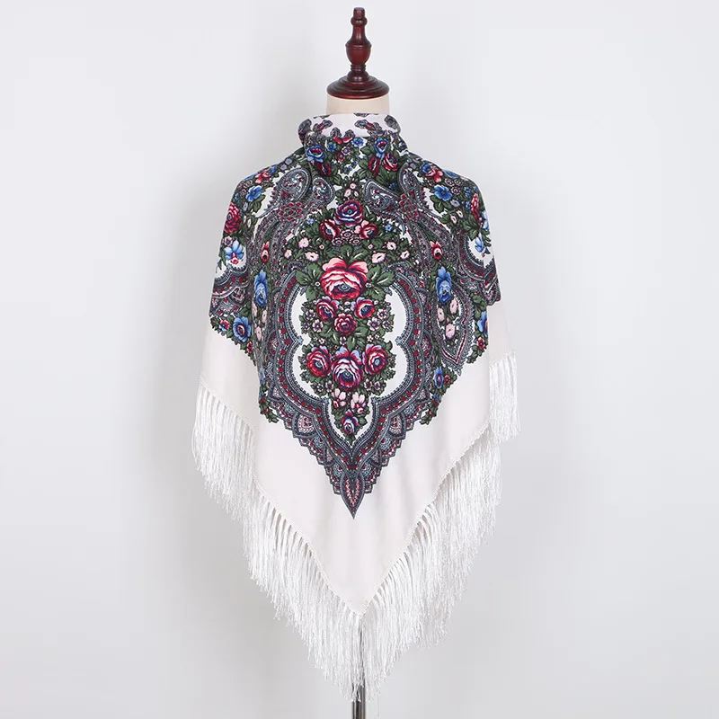 Шарф русская шаль женский головной платок хиджаб бабушка украинские шарфы квадратные одеяла с кисточками Ретро платок