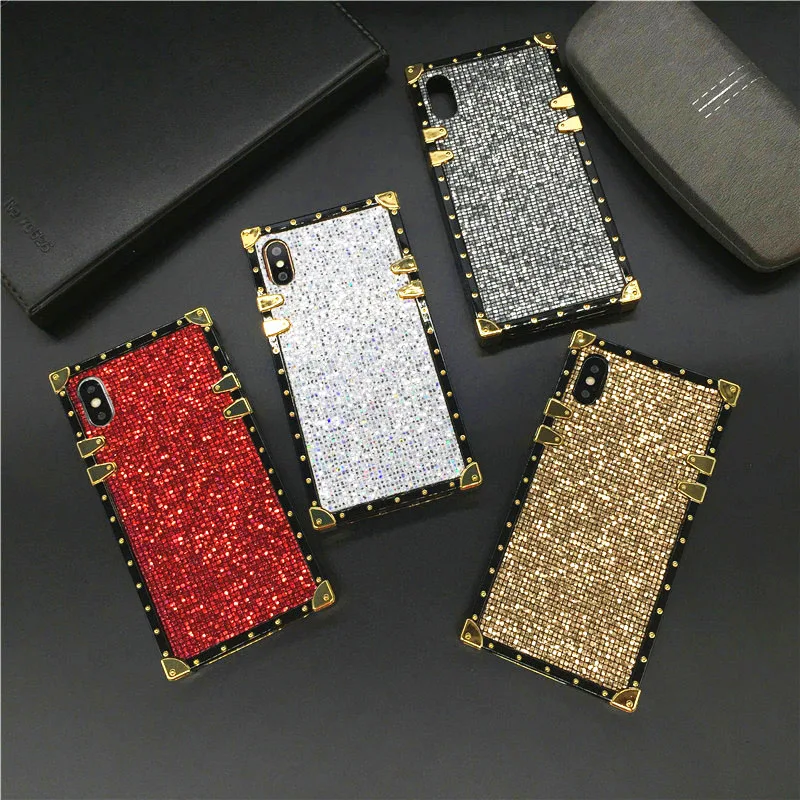 Square Shining Bling Glitter sequins Case Back Cover Capa Fundas Coque