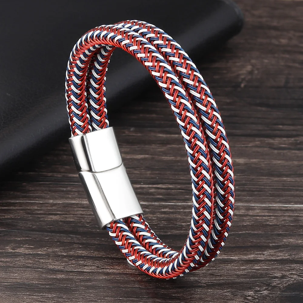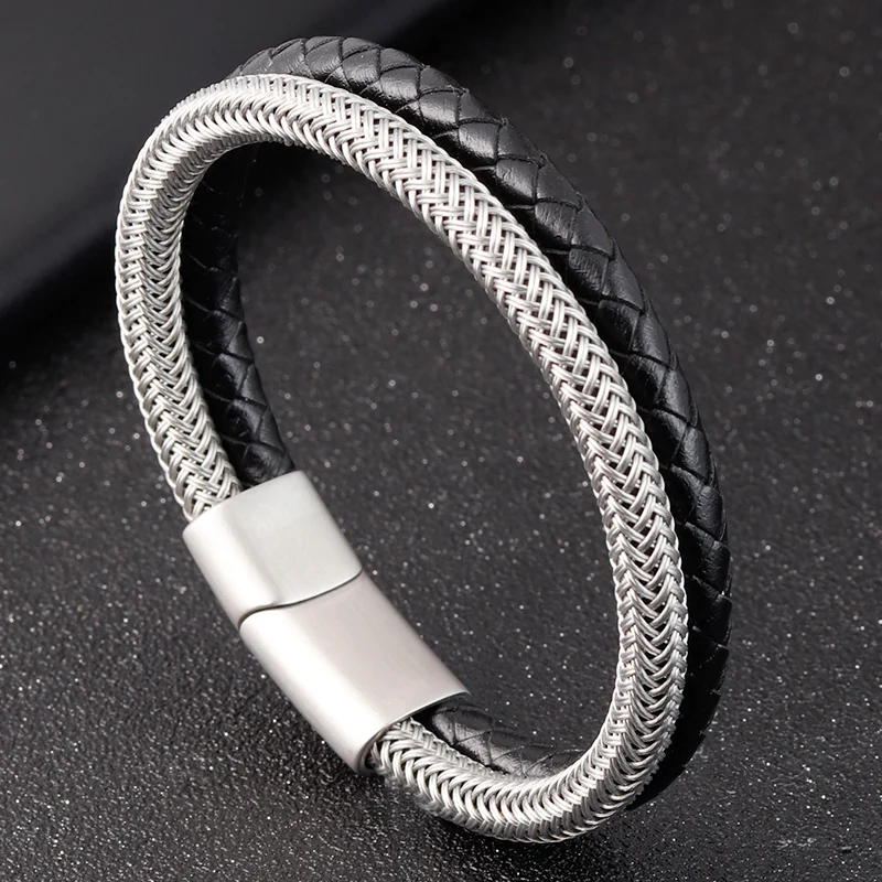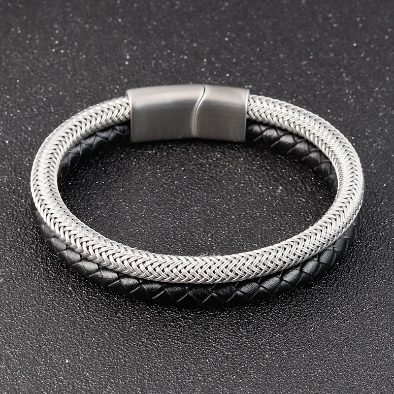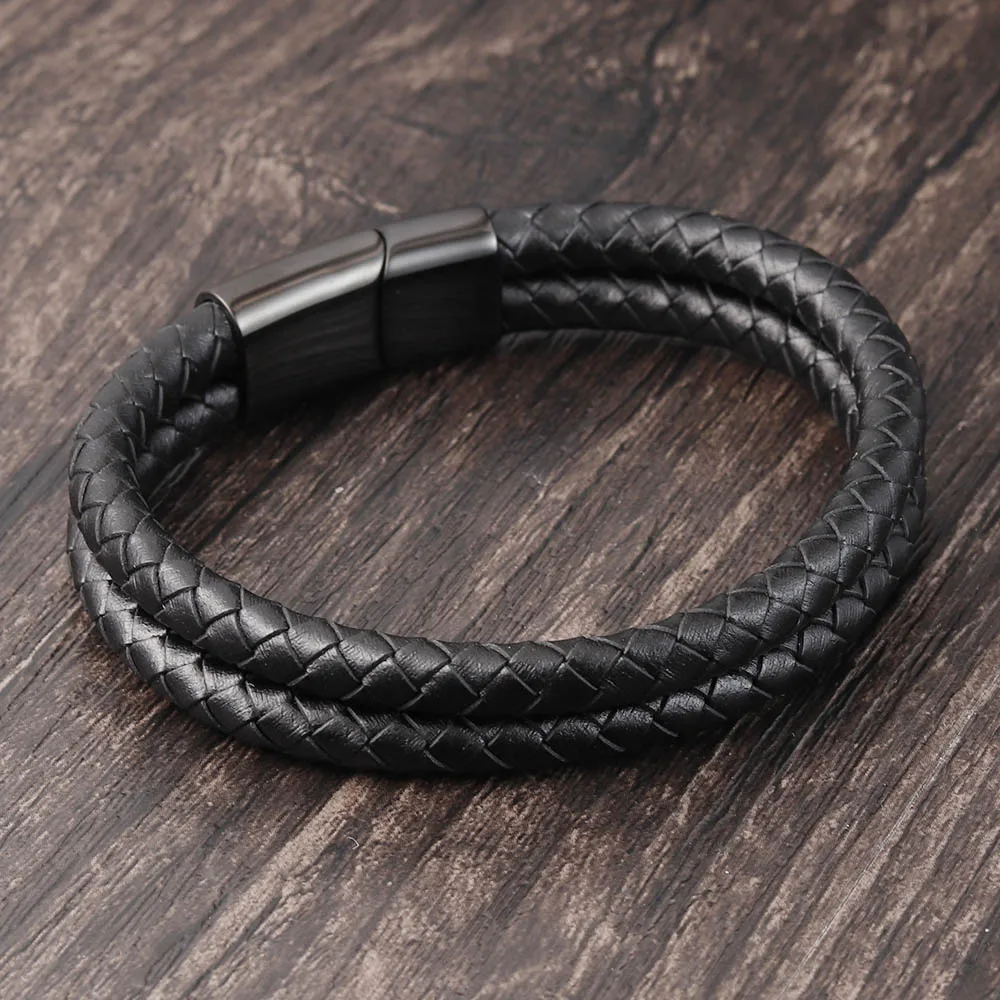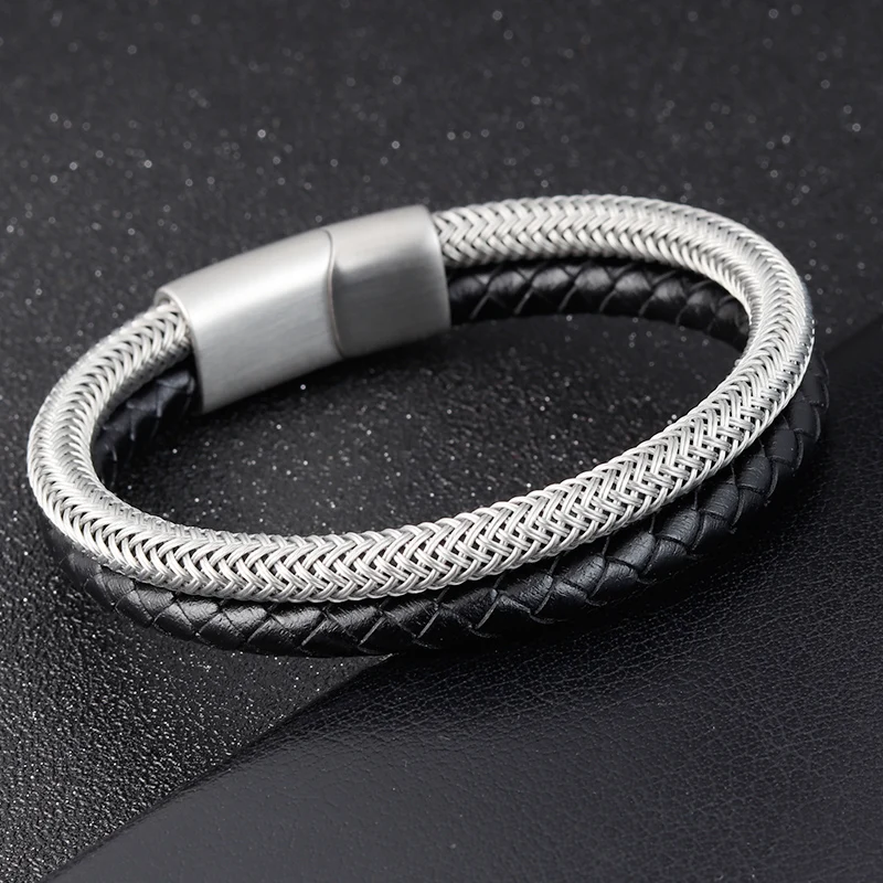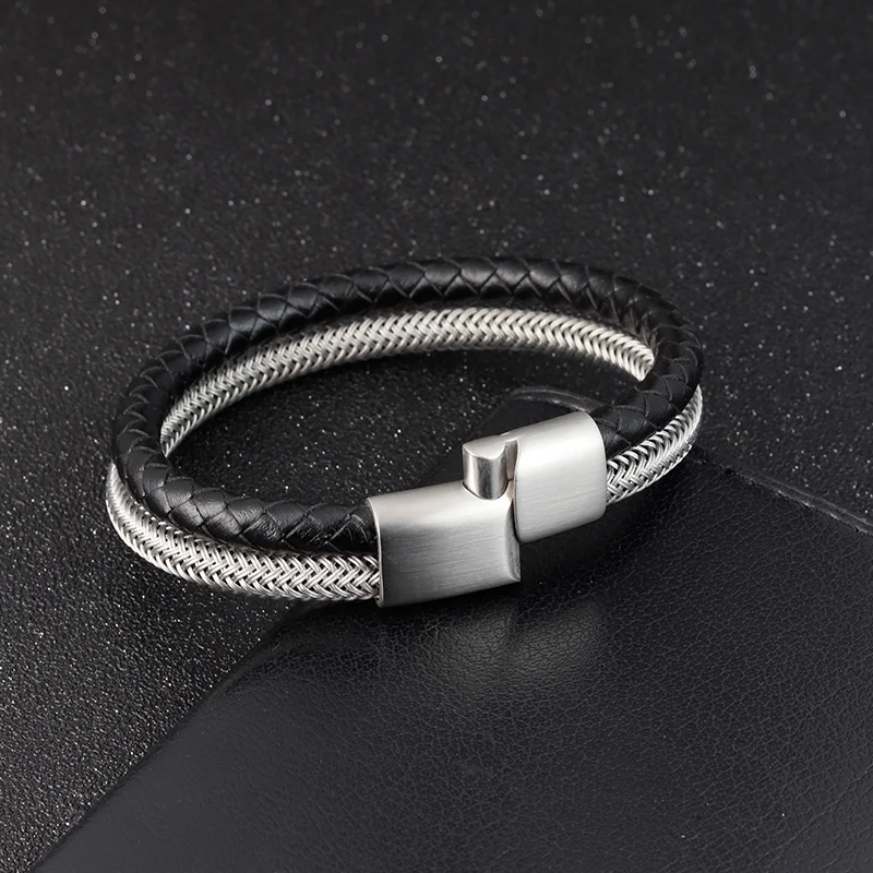 Мужской кожаный браслет с пряжкой из нержавеющей стали