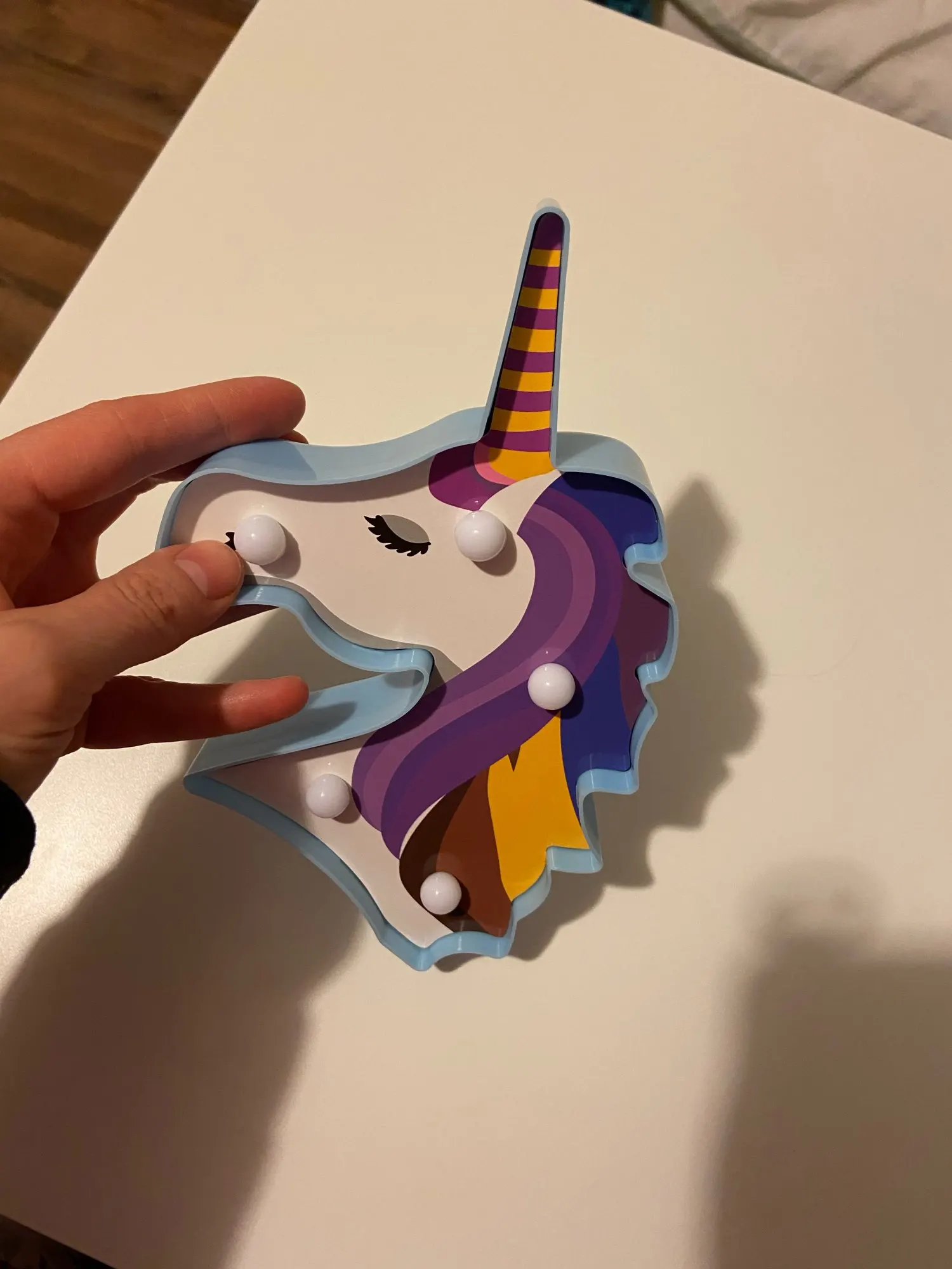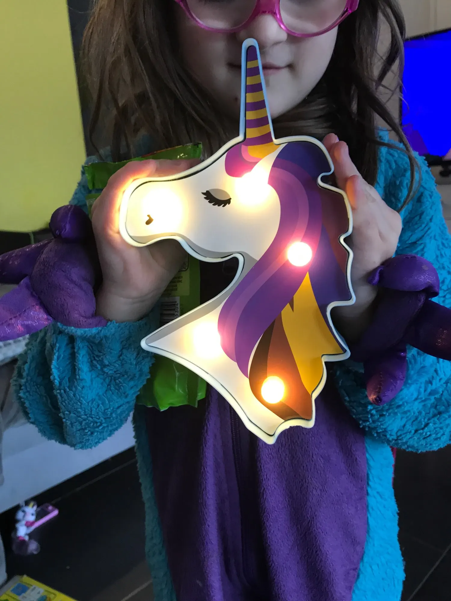 Лампа nieduzy, восхитительная, идеально подходит для комнаты dziewczego. Лампа имеет пять ламп, единорог этот кусок коробки wpasowany в пластиковой форме. Лампа может быть подарком, а не фольгой rozpakowywalam (лампа future spakowana в пленках zgrzewaną), я надеюсь, что после вставки батарея будет работать.