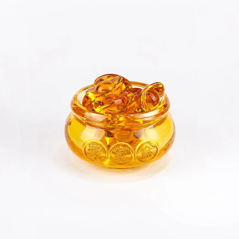 Таинственный китайский желтый кристалл золотые слитки богатство Рог изобилия Сокровище Чаша статуя фэншуй, украшение интерьера