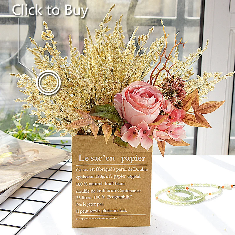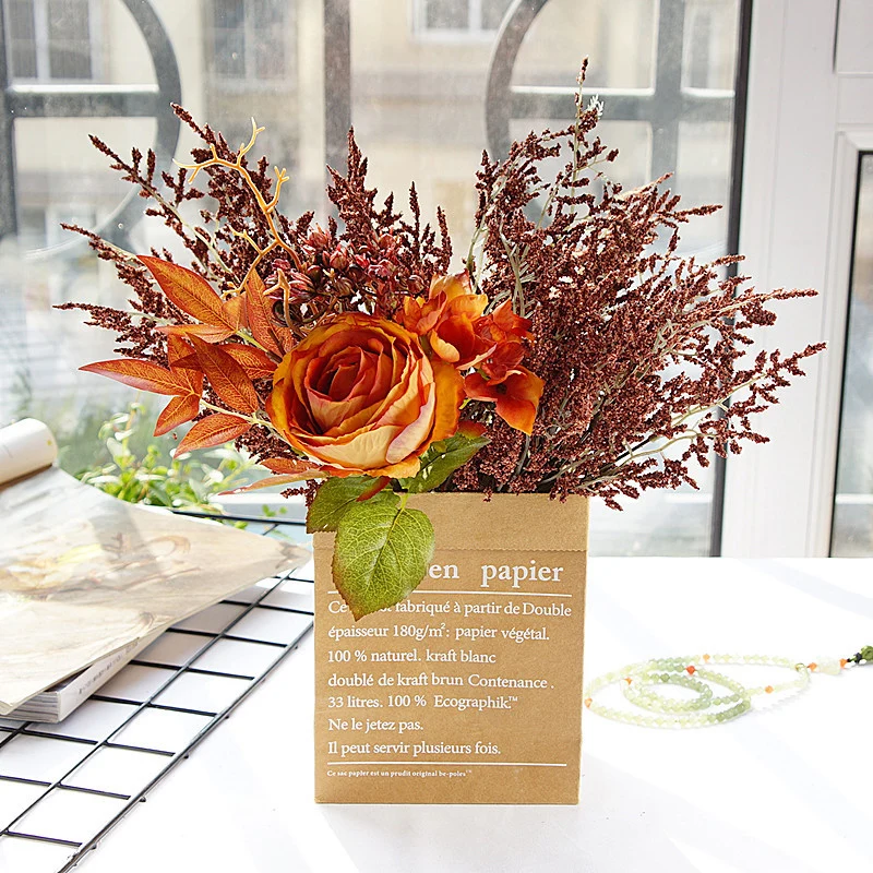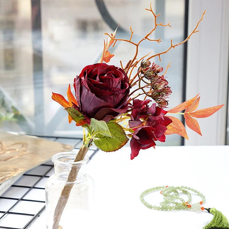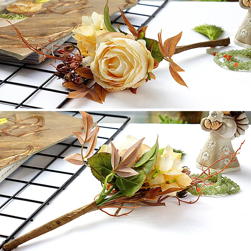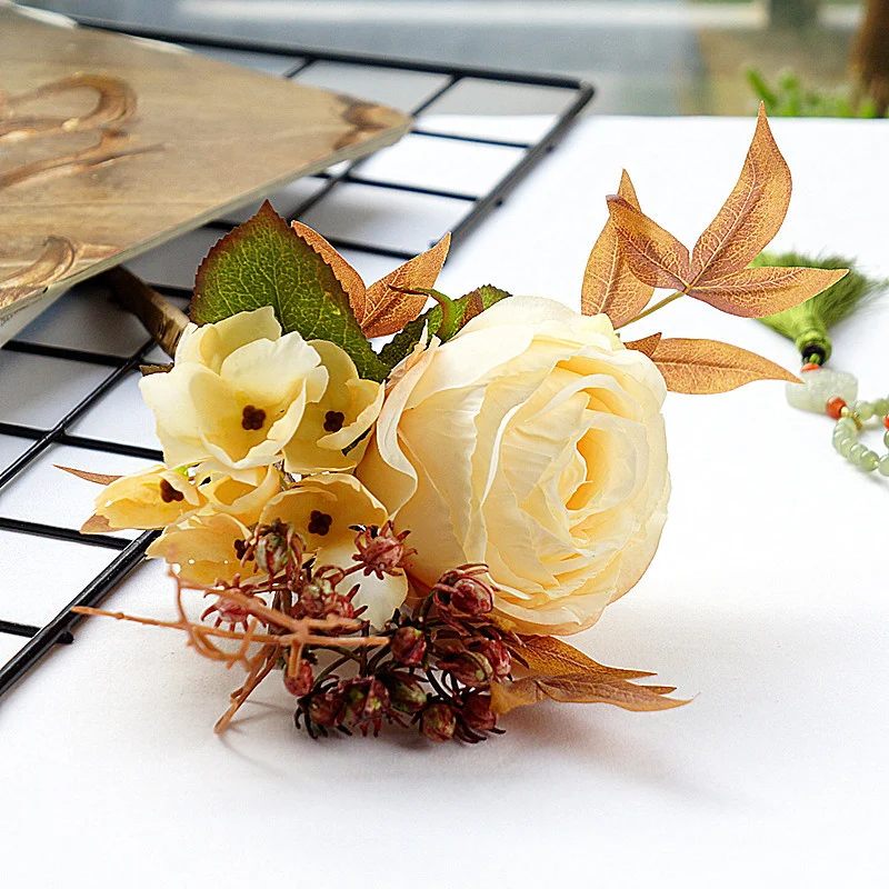 Европейские шелковая искусственная роза цветы сделай сам, пластиковые ветки, ягоды, листья, искусственные цветы для дома, свадебные украшения, реквизит