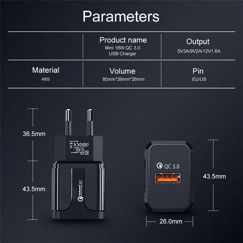 Features4Qualcomm Charger qc 3.0 / eu charger / US fast charge 3.0