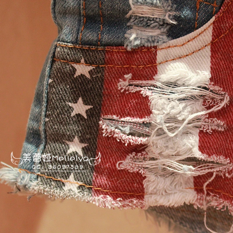 Женские джинсовые шорты с дырками на лето 2020, женские короткие джинсы, женские короткие брюки, обтягивающие хлопковые джинсы с флагом YXR372