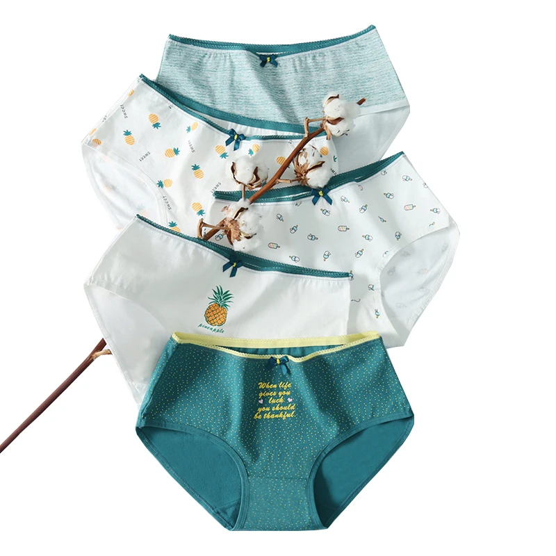 5 шт.компл., хлопковые трусики, женские мягкие хлопковые трусы, женское нижнее белье со средней посадкой, дышащие модные трусы с милым принтом, нижнее белье для девочек