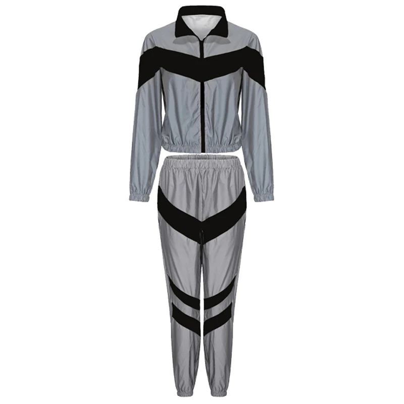 Костюм спортивный женский светоотражающий из топа на молнии и длинных штанов, S-XXL