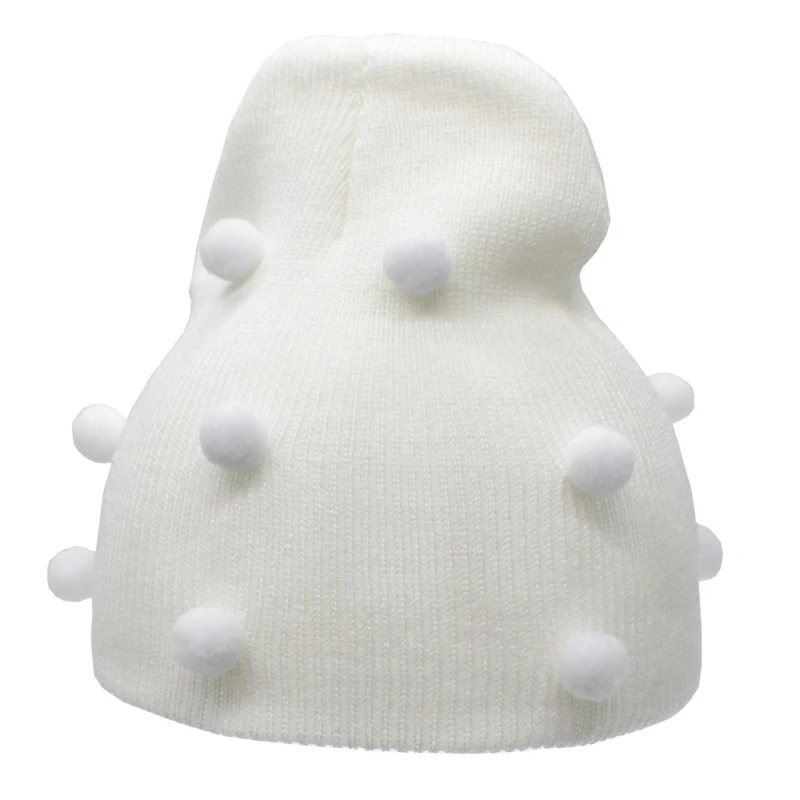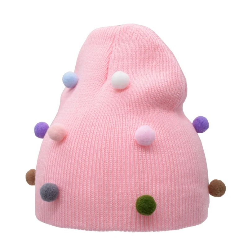 Детская шапка осень-зима вязаная теплая Шапка-бини Кепка для мальчиков, девочек унисекс вязаная эластичная шапка с розовым маленьким помпоном Новинка