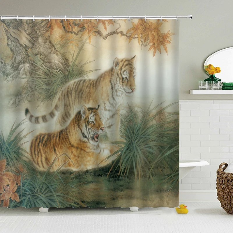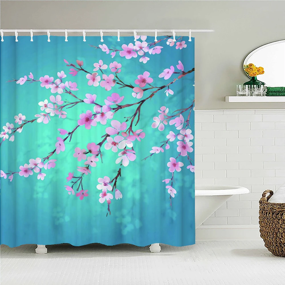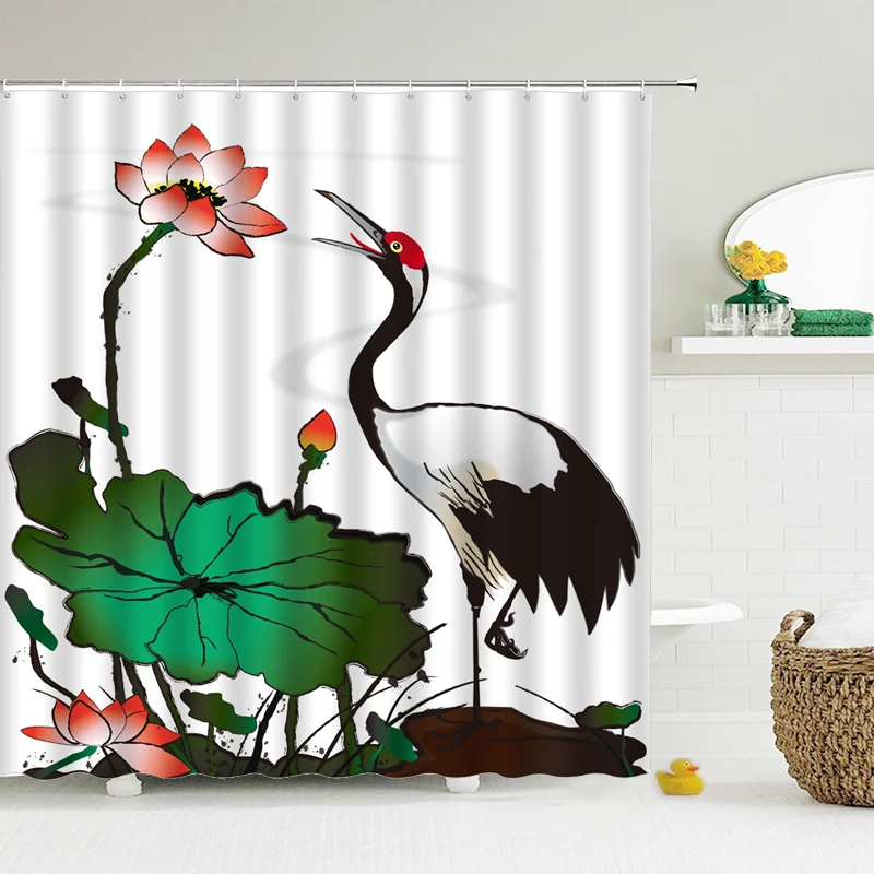 Занавески для душа в китайском стиле с цветами и птицами, водонепроницаемая занавеска для ванной комнаты, ткань с 3d принтом и крючками, декоративная занавеска для душа
