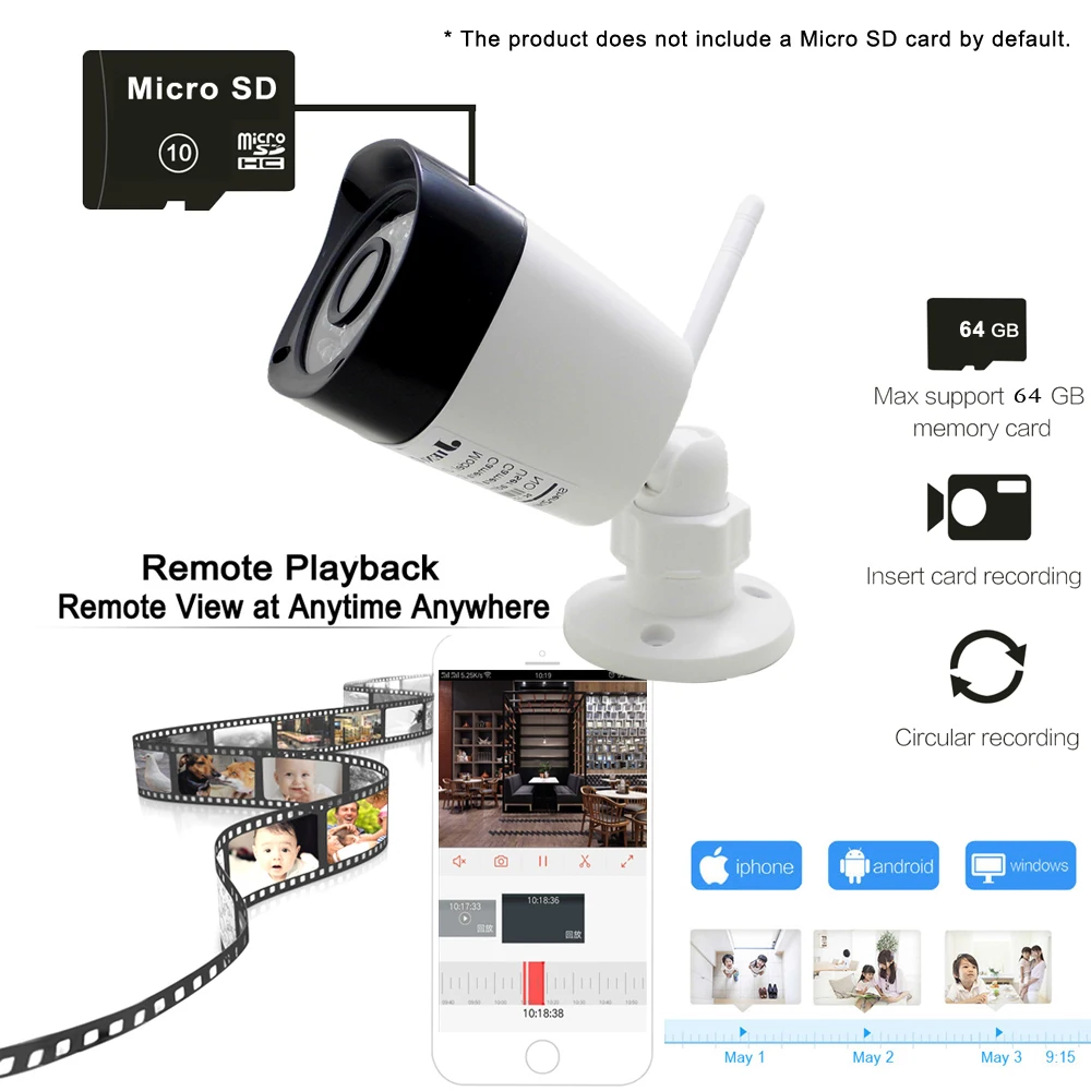 Беспроводная камера видеонаблюдения отправляет мгновенное оповещение о движении в приложение для телефона jieos. И записывает на sd-карту (звук и видео). Автоматическая съемка фотографий и отправка электронных писем с полным оповещением, мы вряд ли пропустим любые непредвиденные события, происходящие или произошедшие.