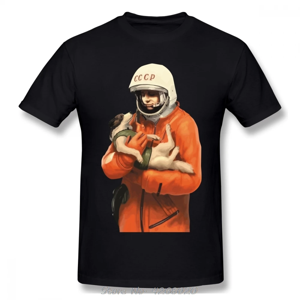 Стильная футболка Харадзюку Лайка Гагарин, советские космические герои, футболка СССР, Мужская футболка высокого размера, футболка большого размера с коротким рукавом, футболки в стиле Харадзюку