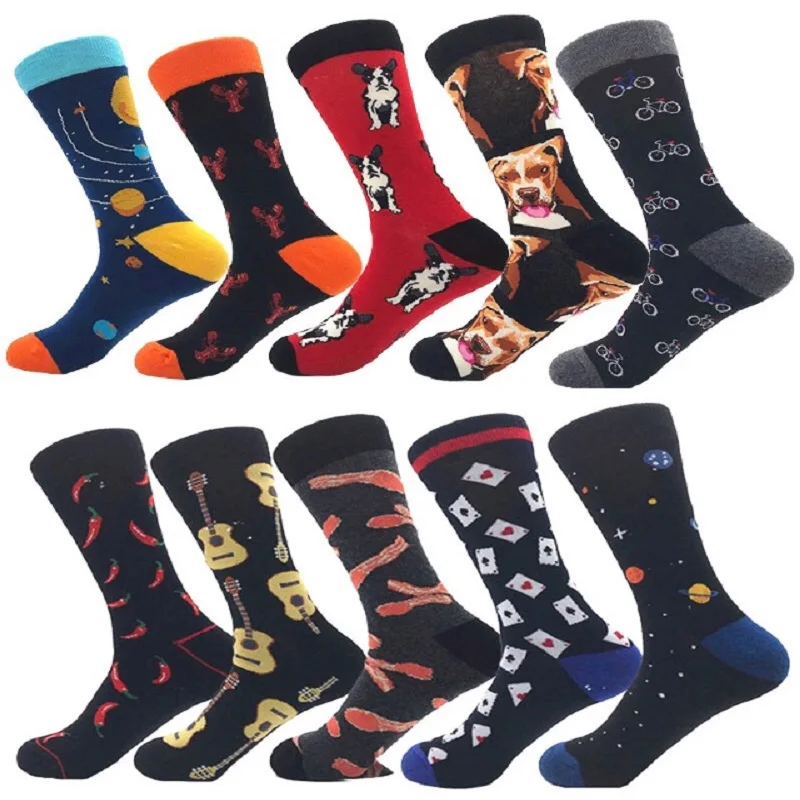 Новинка Веселые забавные мужские носки с графическим рисунком из чесаного хлопка с пивом, акулой, пенисом, инопланетянином, головой, собакой, рыбой, пингвином, акулой носки Рождественский подарок