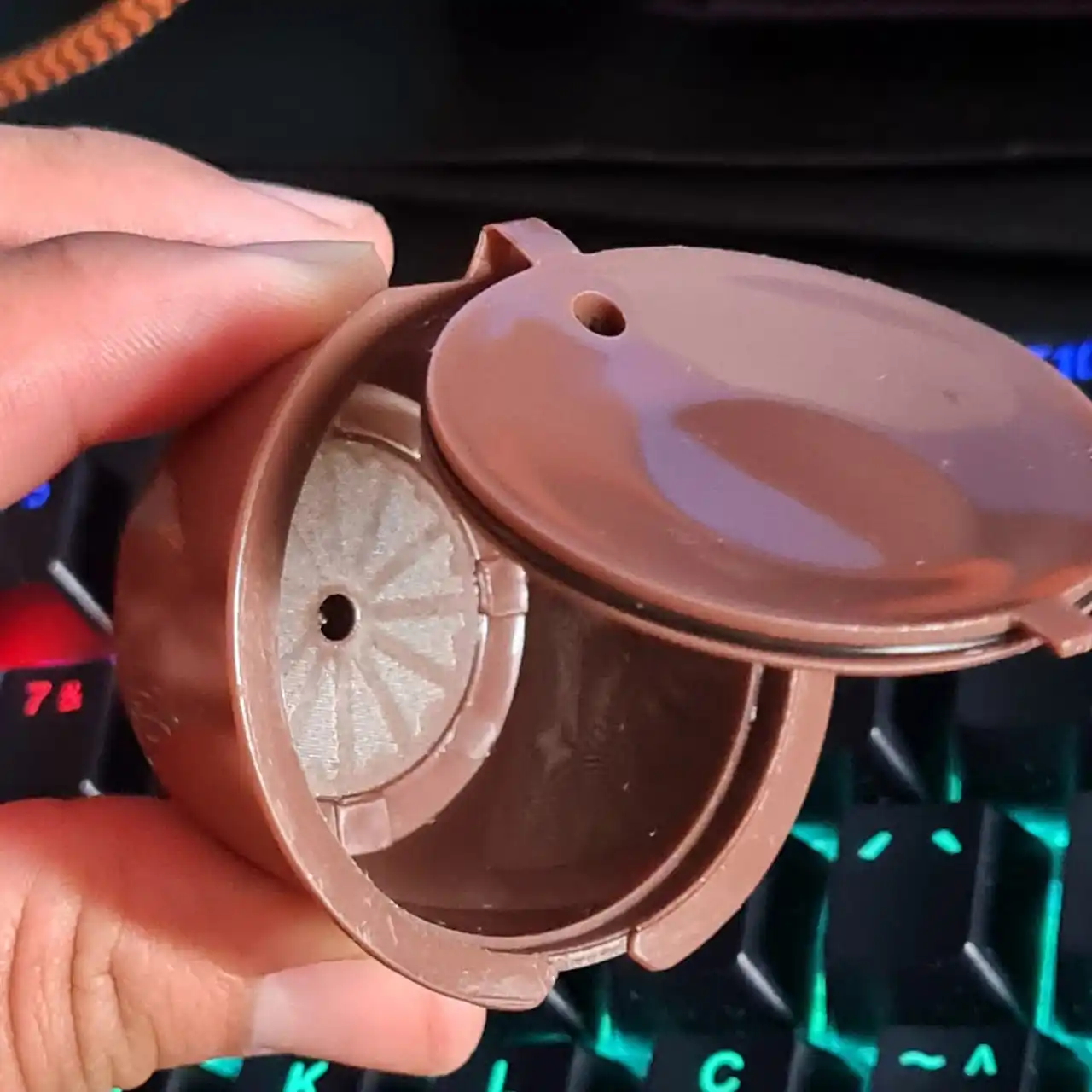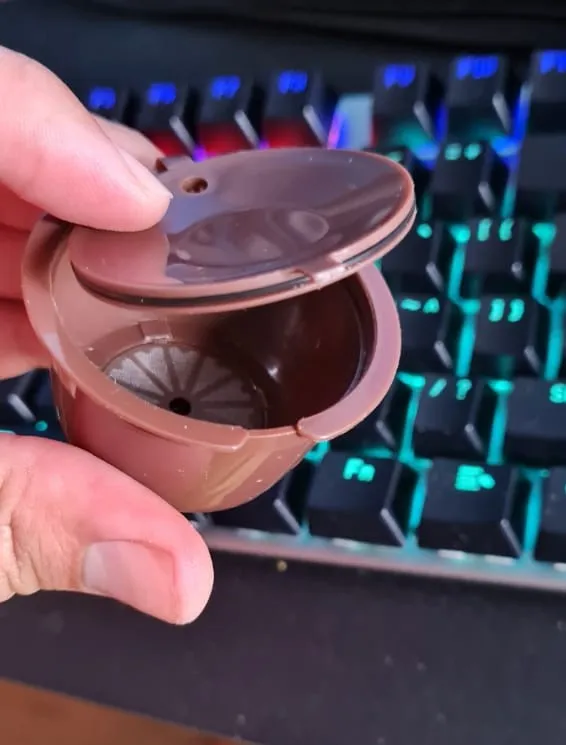 Produto chegou em bom estado bem conservado . Já utilizei algumas vezes sempre a mesma cápsula e funciona muito bem. Recomendo este produto de facto . Bem resistente e julgo que o possa reutilizar inumeras vezes . Muitas mesmo.