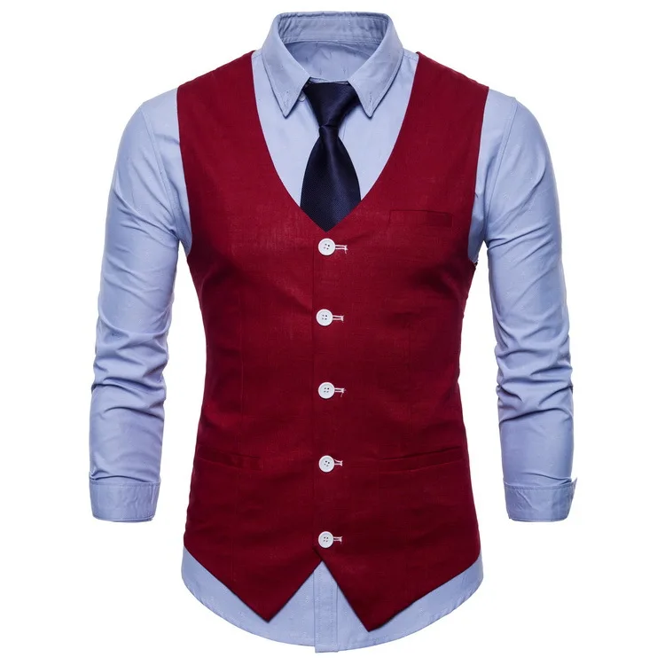 Жилет Мужской Повседневный хлопковый льняной, жилет 9 цветов, деловой, свадебный костюм, жилет, зеленый, весна 2020