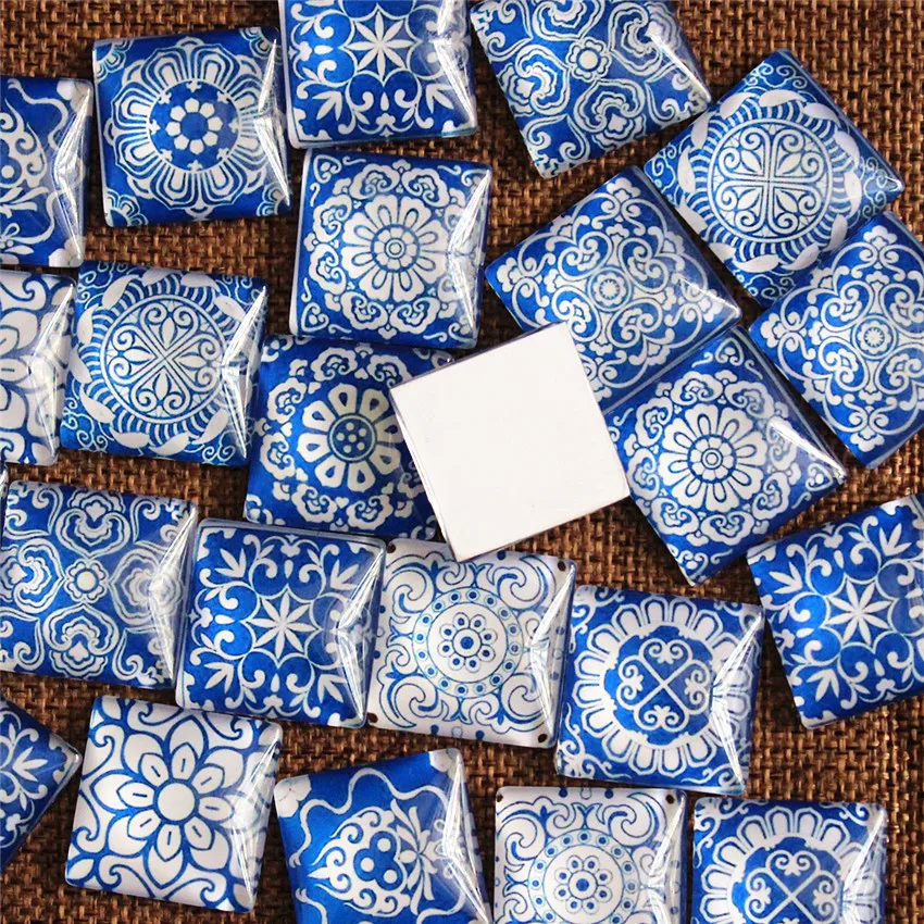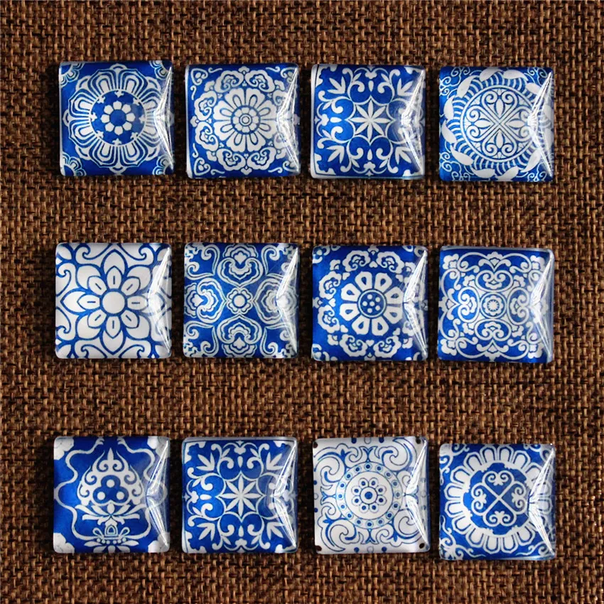 Квадратные синие и белые фарфоровые кабошоны для изготовления фотографий сделай сам, 10 мм, 12 мм, 20 мм, 25 мм