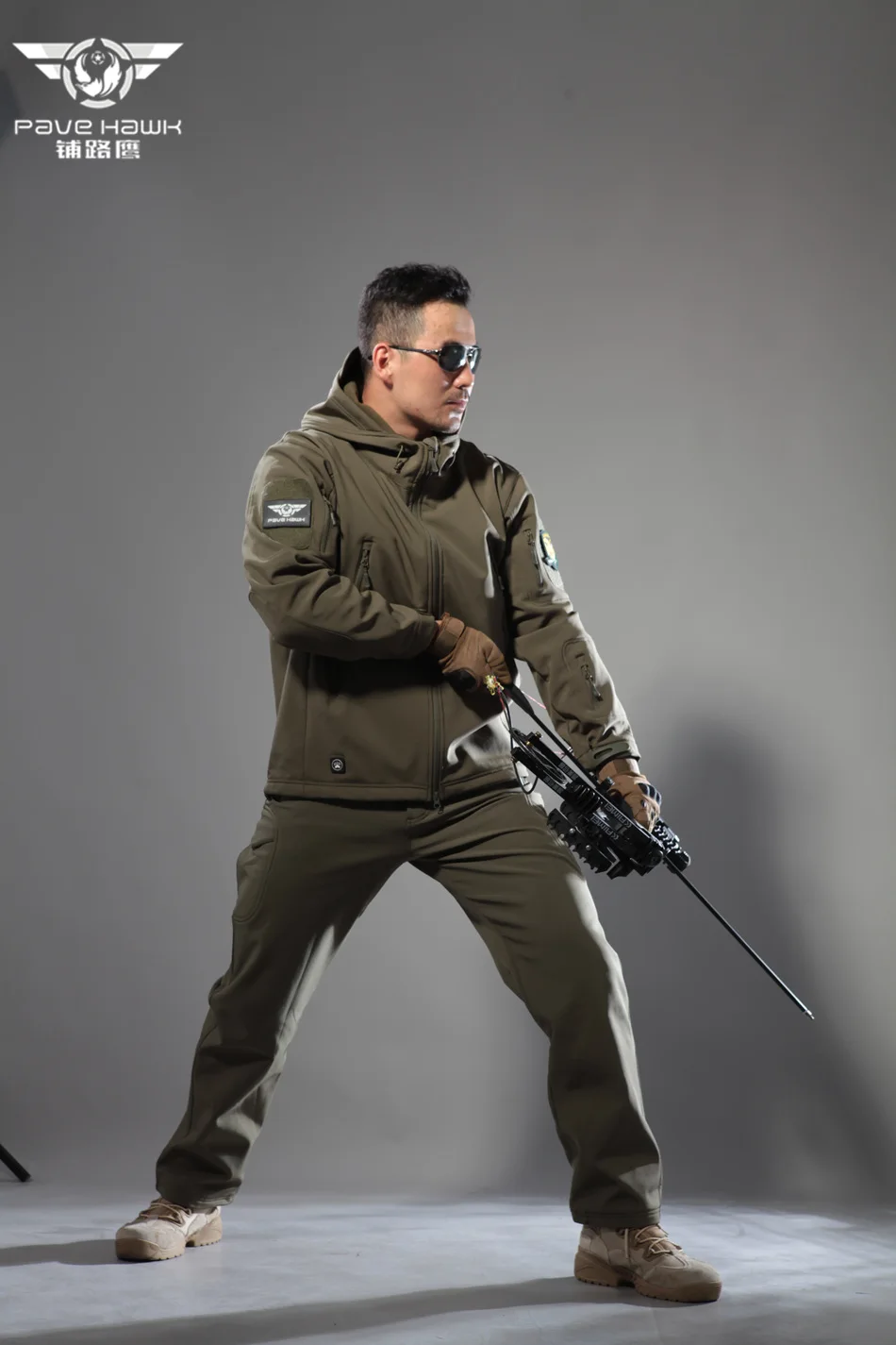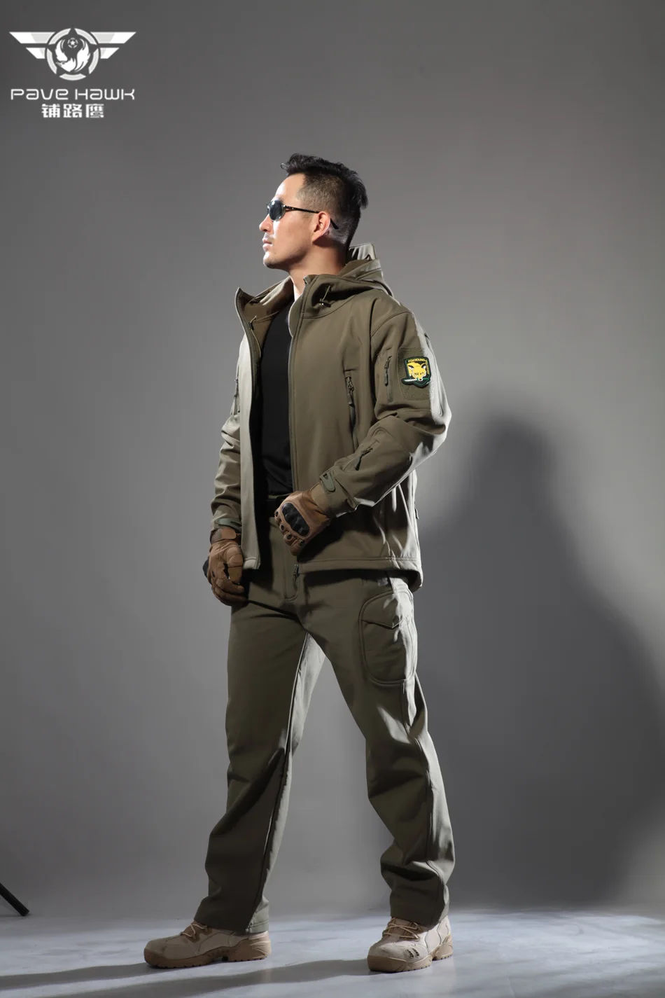 Зимние теплые Водонепроницаемый куртка Мужские непромокаемые флисовый комплект софтшелл Маскировочный охотничий костюм треккинг штаны для активного отдыха рыбалка подняться пальто