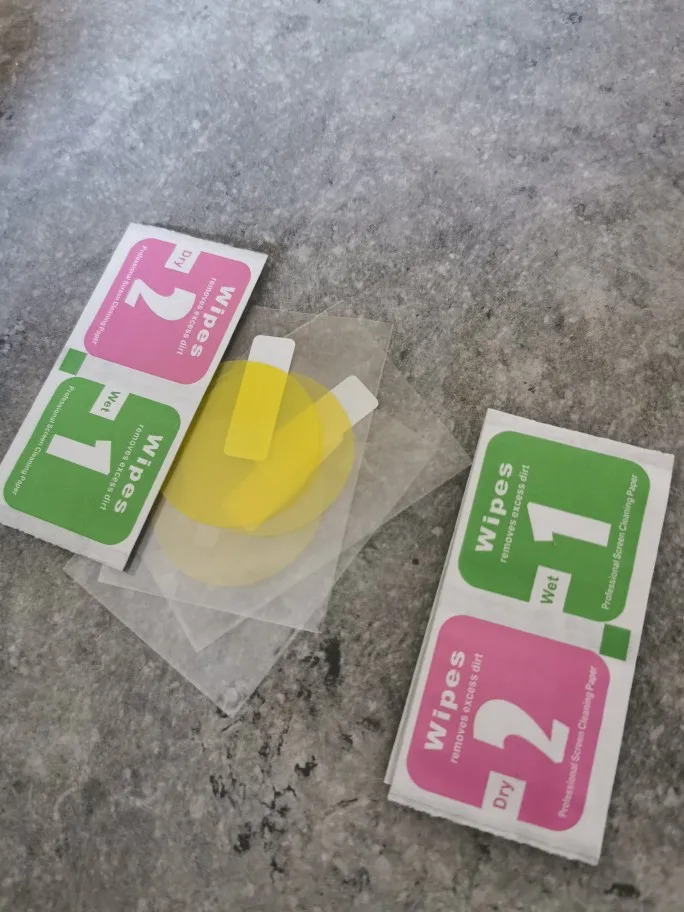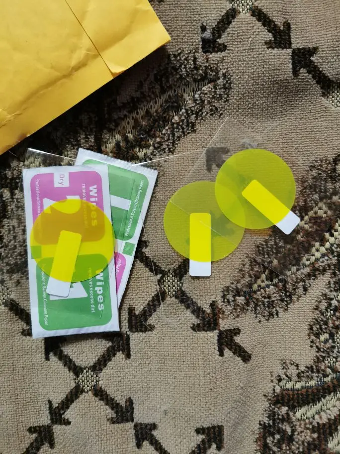 Немного долгая доставка, плёнка неплохая, сначала наклеила с пузыриками, но со временем они исчезли, 3 штуки в комплекте, что очень удобно, если начнёт царапаться, хотя хожу недели, следов царапин нет)