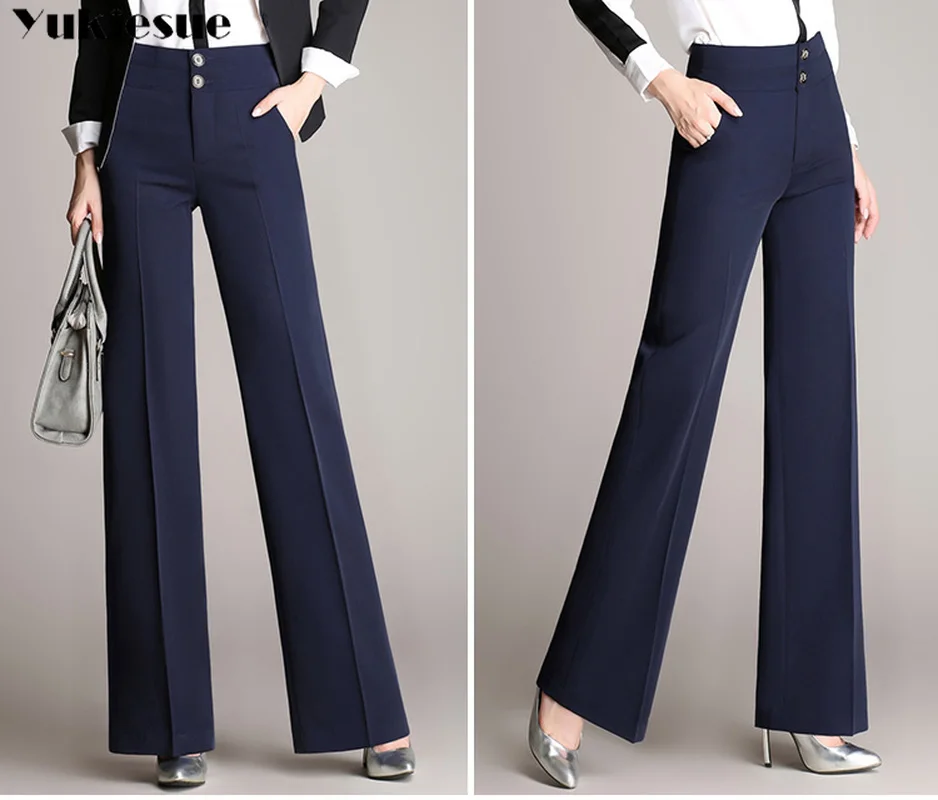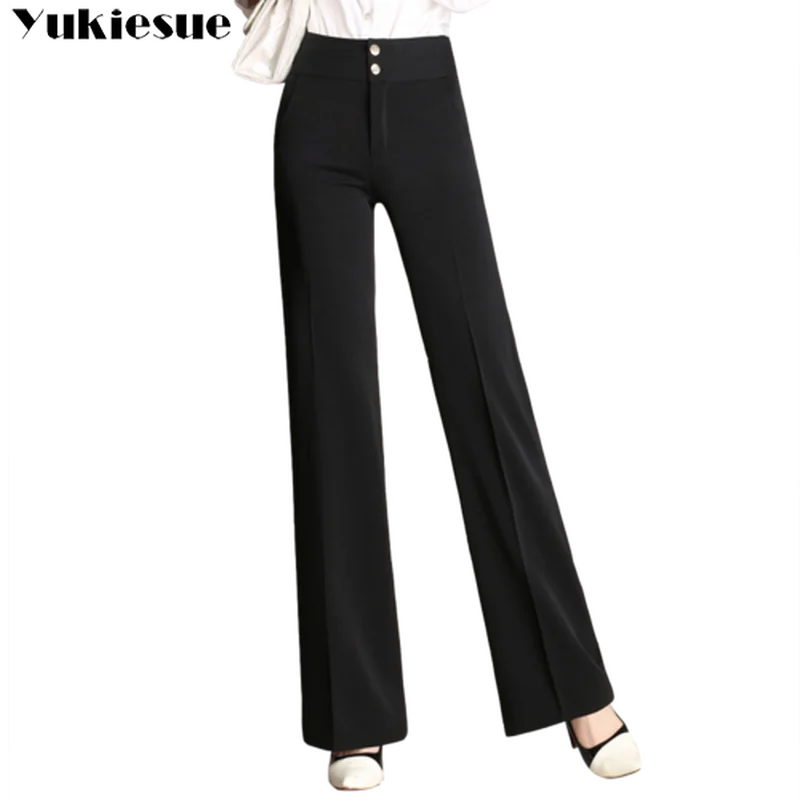 Женские широкие брюки с высокой талией, элегантные винтажные офисные брюки свободного покроя, повседневные брюки, 2020