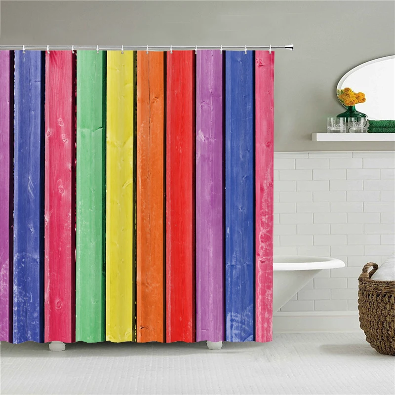Занавеска для душа с разноцветными радужными полосками, водонепроницаемая, из полиэстера, домашний декор, моющаяся занавеска для ванной s180 * 180 см