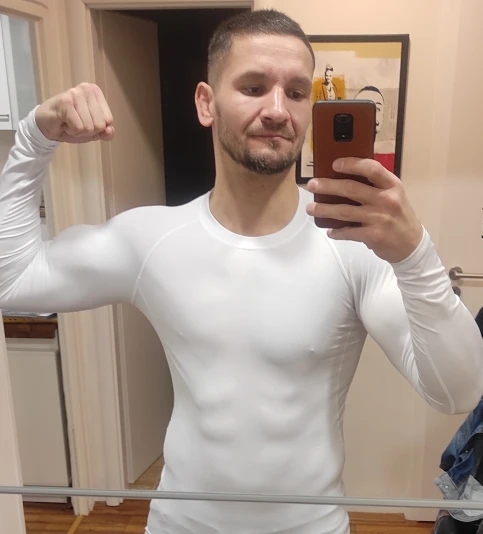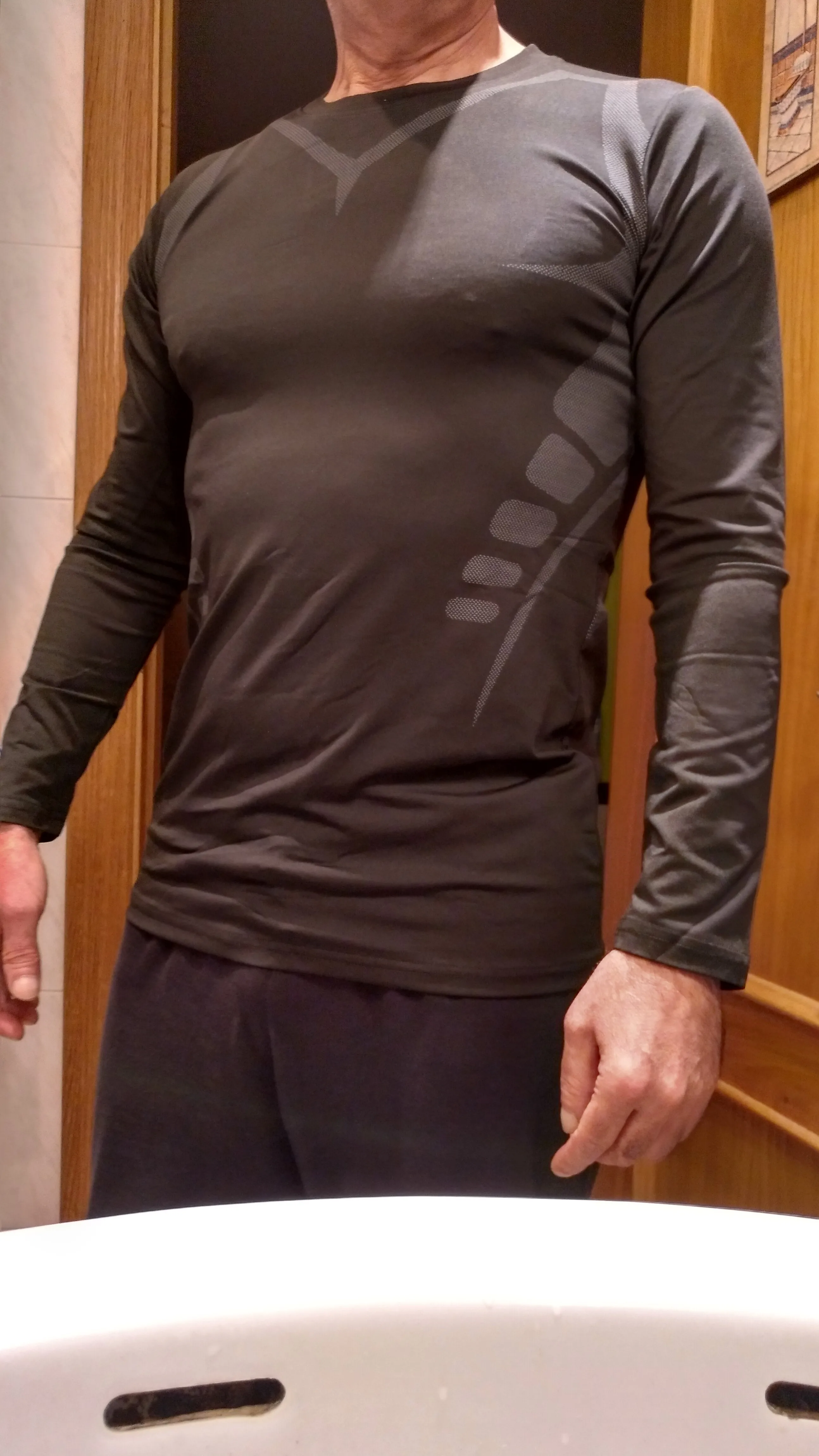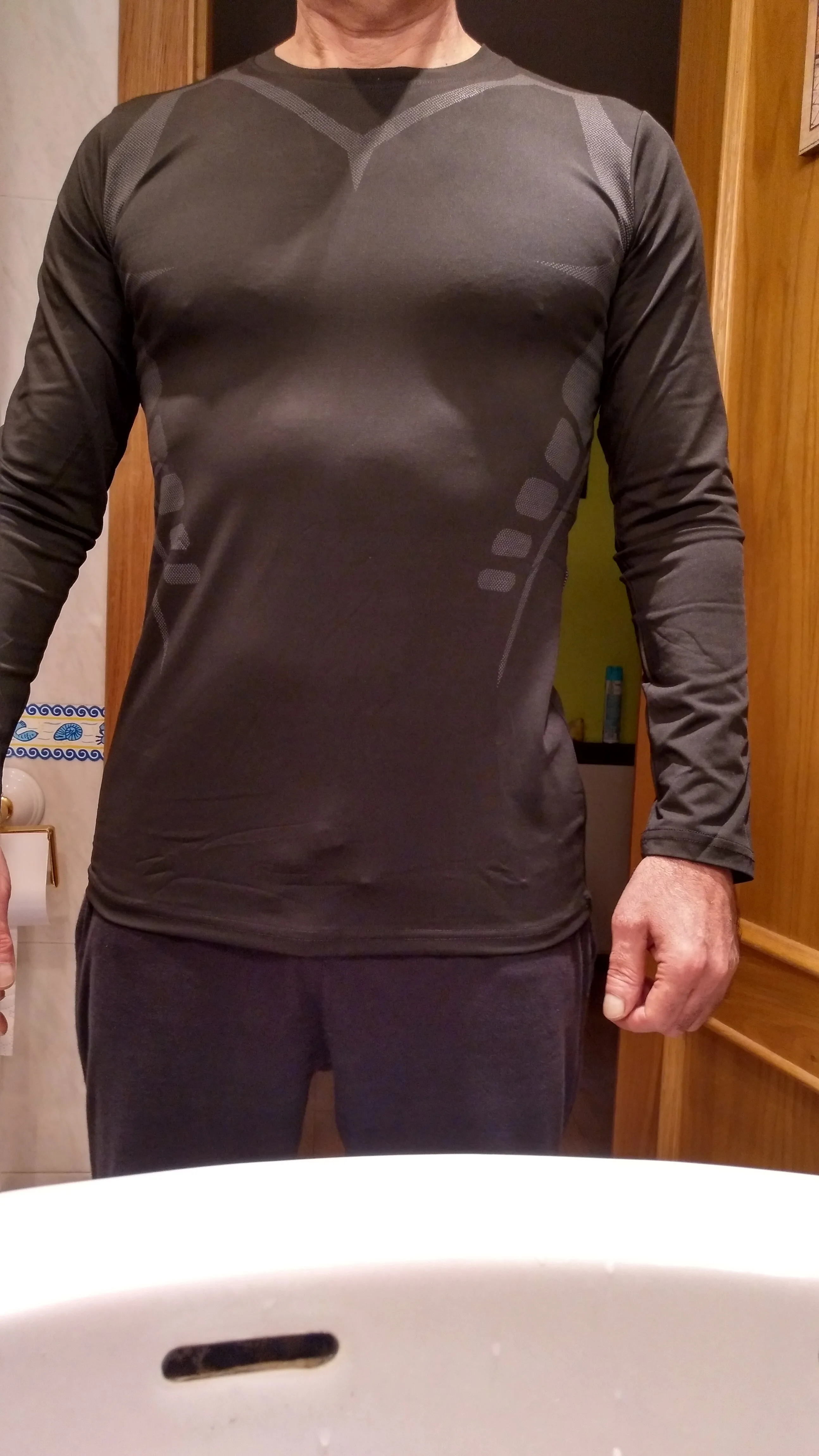 Действительно хороший материал... Я не ожидала этого. Я заказал размер L a I am 181 см, 86 кг мышечное тело... Спасибо продавцу за маленький подарок... Держатель для телефона для фитнеса, если вы бегаете, например