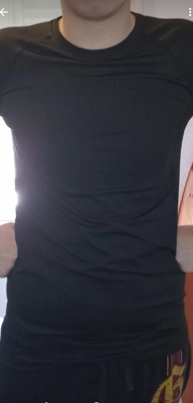 Прибыл раньше. Материал очень хороший. Эластичный и дышащий. Но размер очень маленький. Возможно, вам потребуется выбрать на 2 размера больше. Это 2xl, но он очень сильно обнимает меня. Мне нужен Размер 4xl.