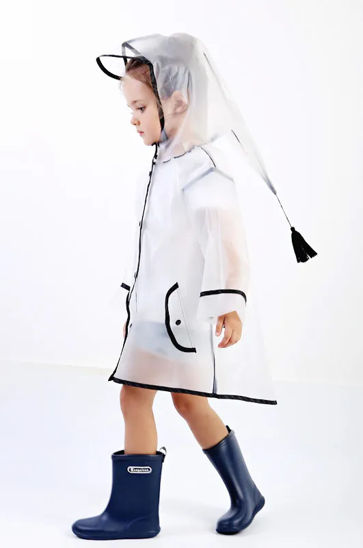 Милый прозрачный дождевик из ЭВА для детей, водонепроницаемый дождевик для улицы, ветрозащитное пончо с шляпой, Школьное дождевое снаряжение
