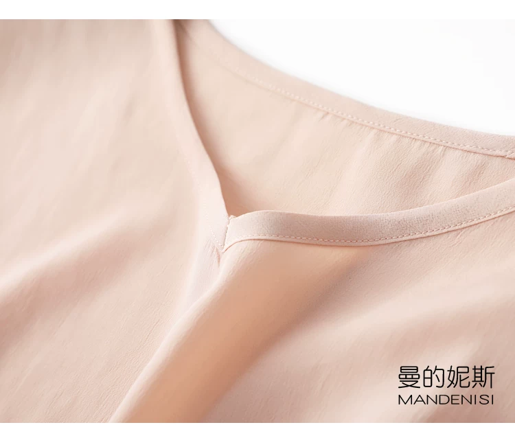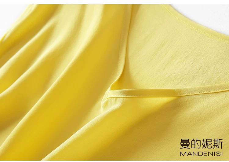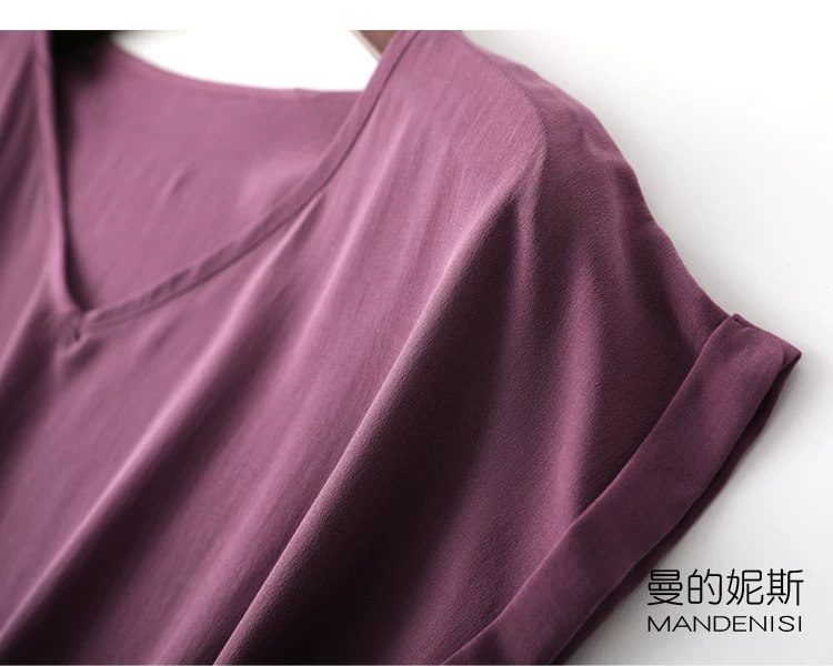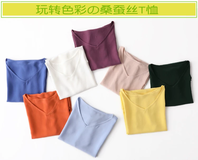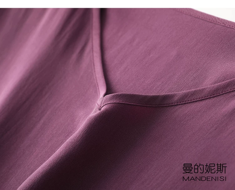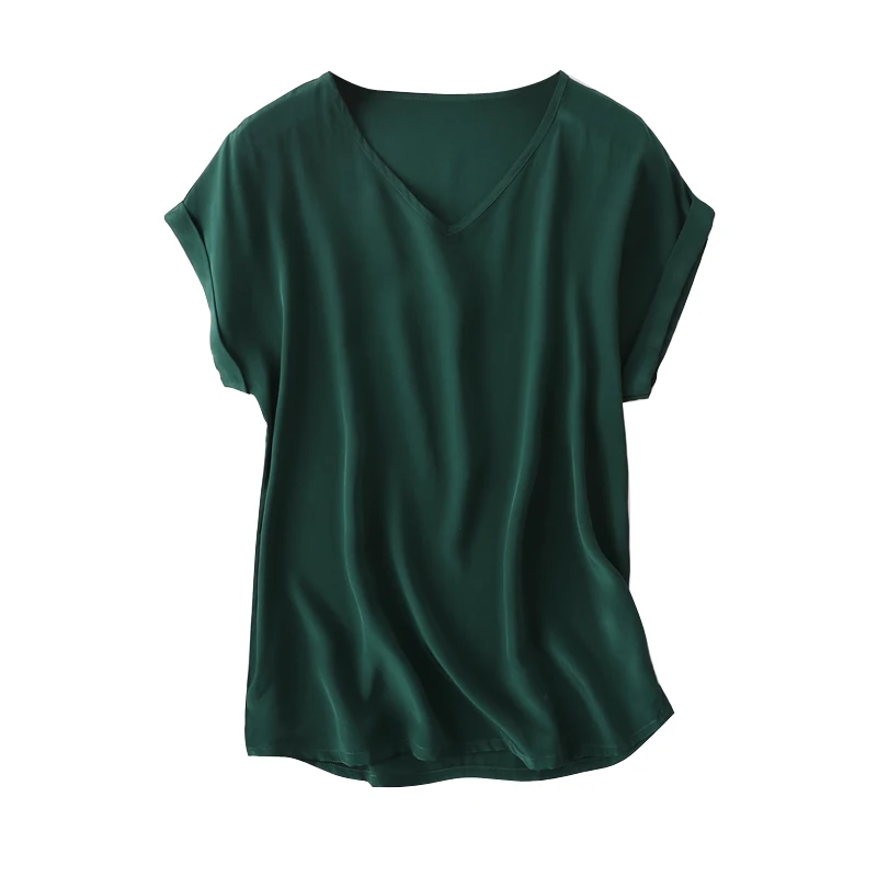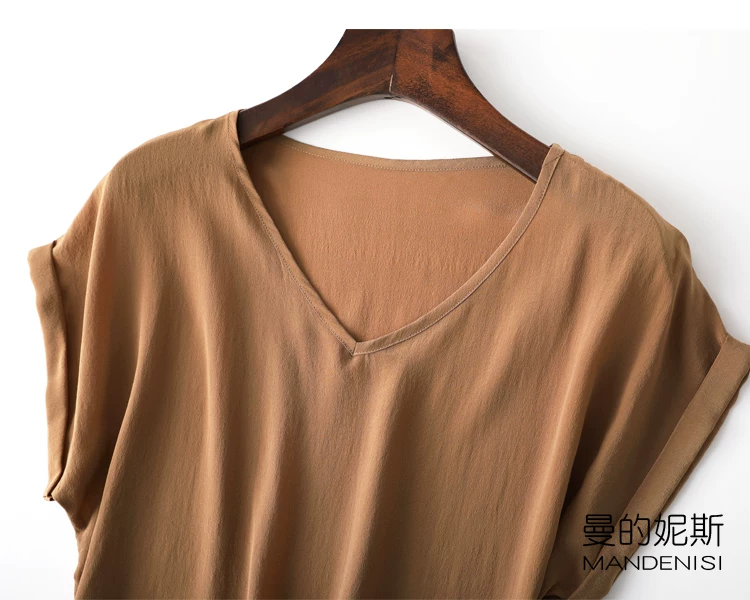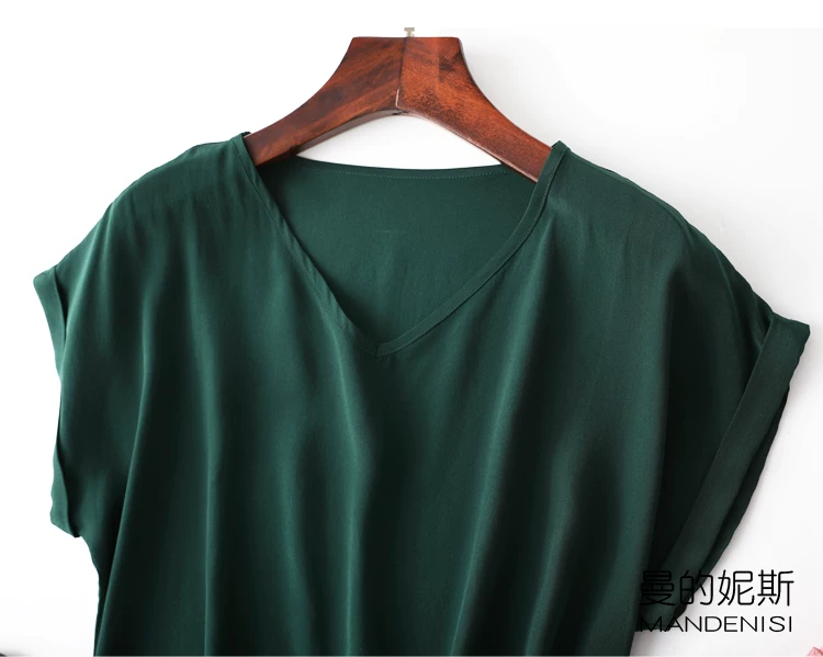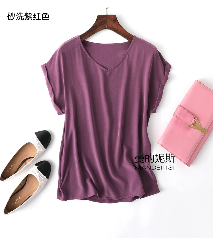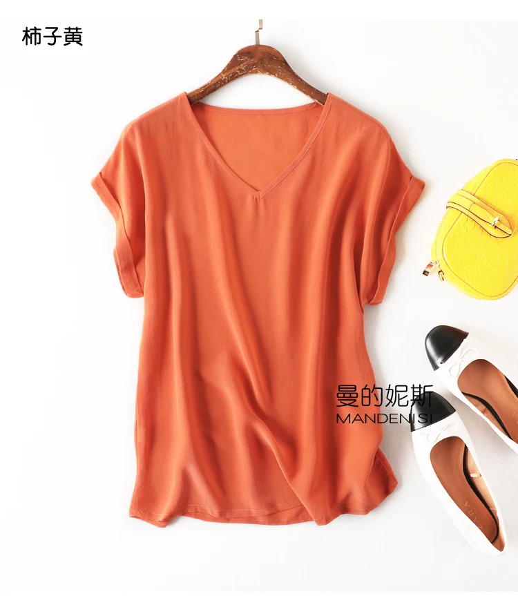 Летняя Однотонная рубашка с V-образным вырезом и короткими рукавами из 100% натурального шелка, женская одежда, размера плюс